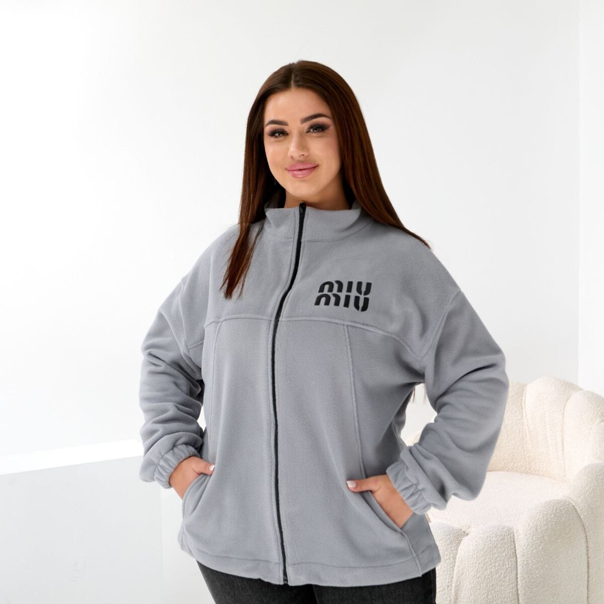 Комірець-стійка.Застібка на блискавці,по низу виробу резинка на стопорах,дає можливість стягувати низ кофти,або носити прямий силует.Рукава по низу на резинці.