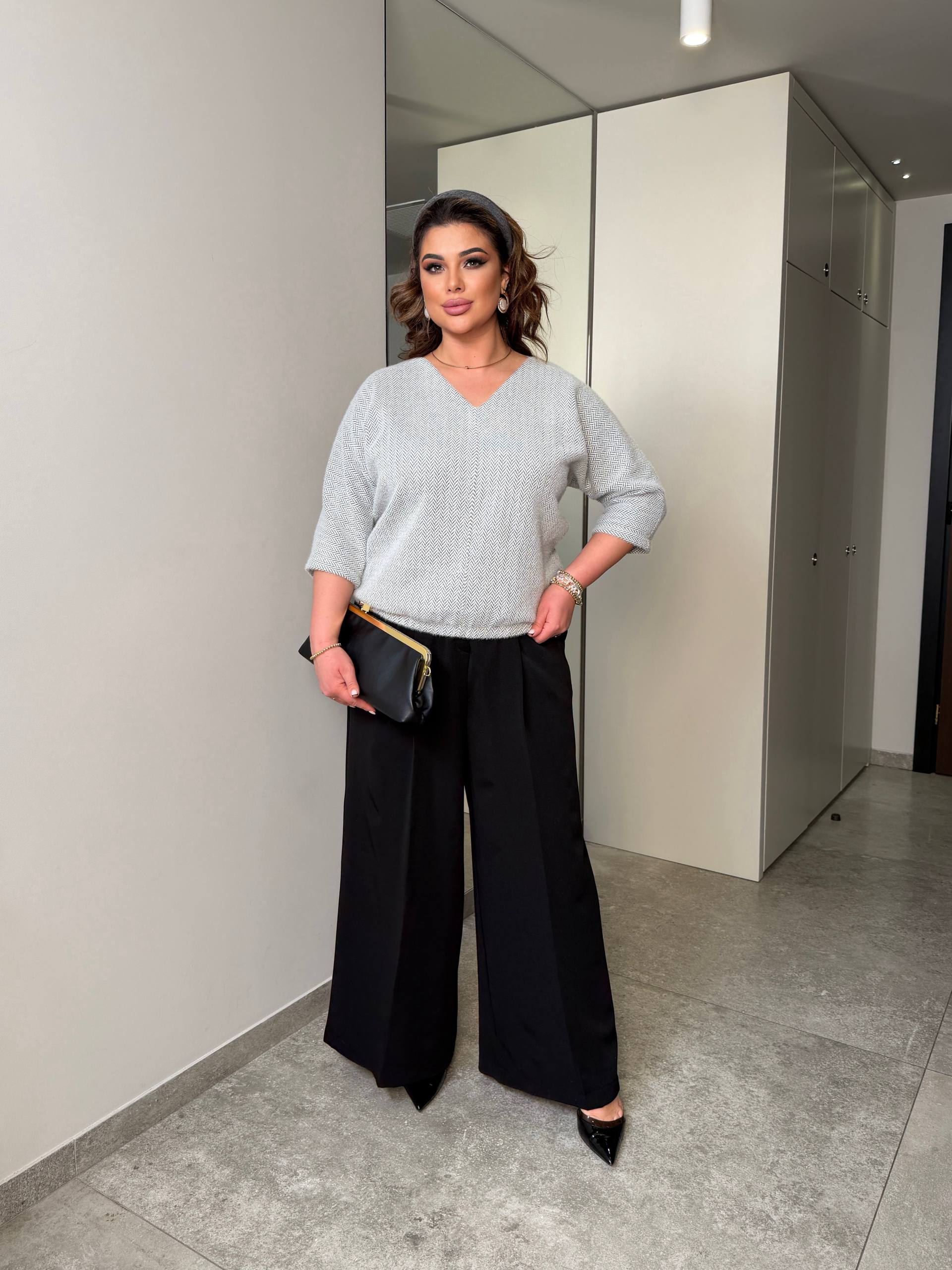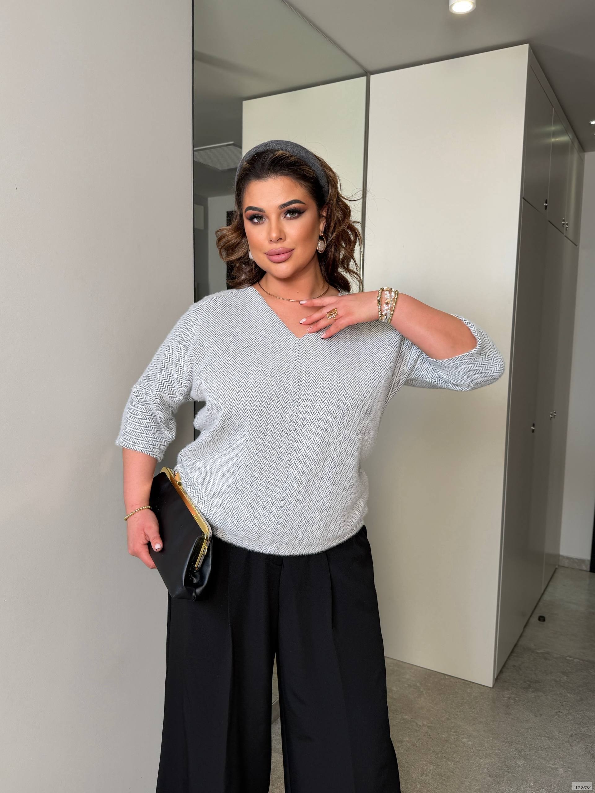 Кофта з дуже мʼякої приємної до тіла тканини, із V-вирізом. Знизу на резинці.
