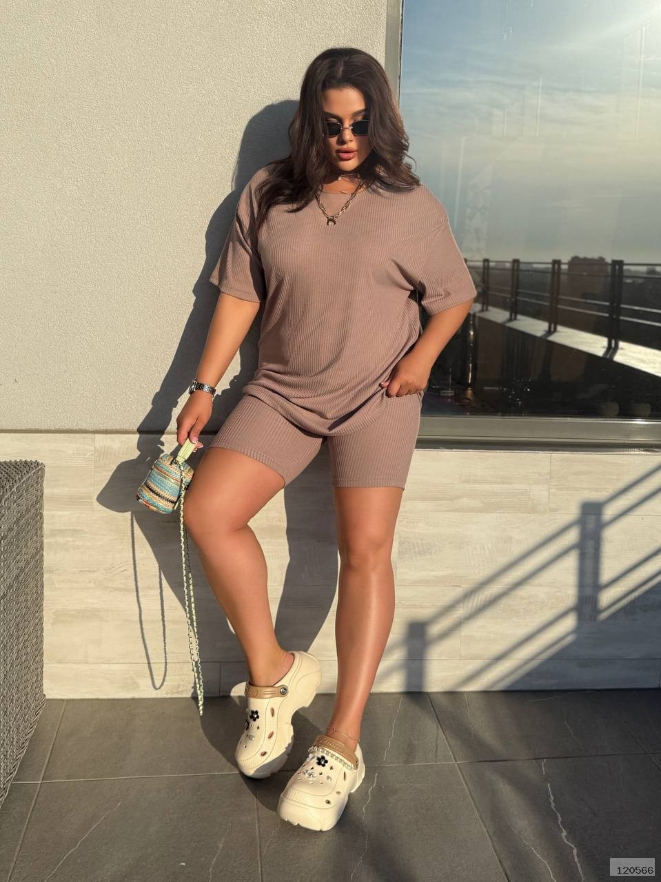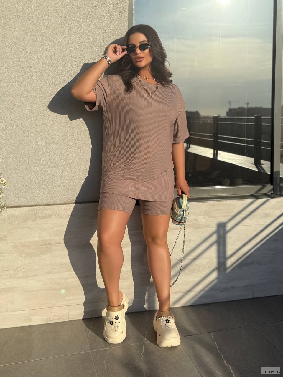 Стильний костюм двійка.Футболка оверсайз та велосипедки.Висока посадка веліків робить їх мега зручними.Футболка вільного крою дуже зручна та комфортна.