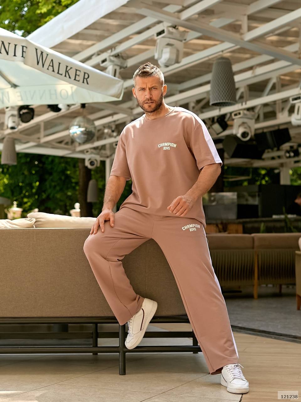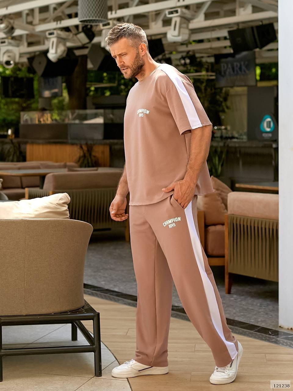 Футболка з принтом «CHAMPION BOYS» спереду + зручні штани з поясом на резинці та шнурком,бічними і задньою кишенею.
