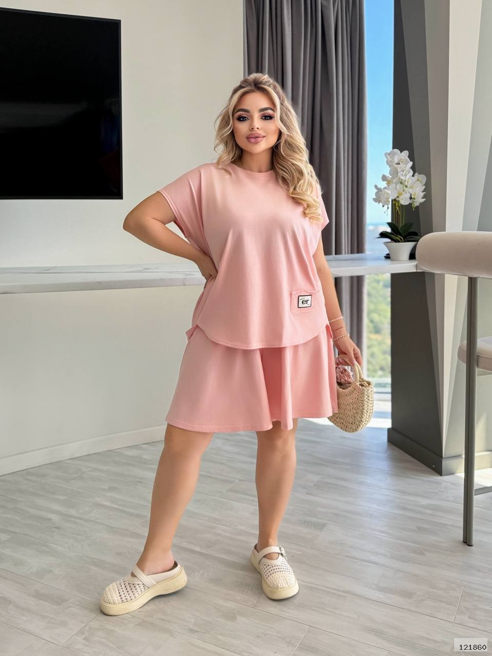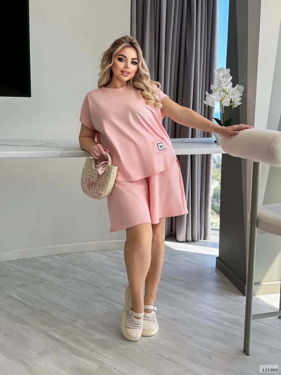 Стильний повсякденний костюм, дуже зручний і підійде на всі типи фігури.Тканина приємна на дотик, не парить та добре тягнеться. Пошив вищої якості. Тканина не просвічується Футболка вільного фасону, цікавого дизайну. Знизу декоративна нашивка. На талії резинка, гарна еластичність, шорти вільного крою, є дві кишені спереду.