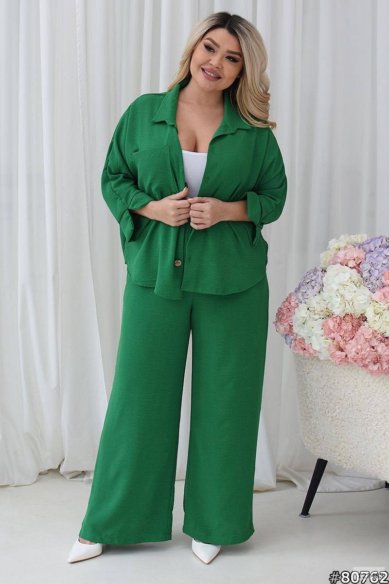 Стильна весняно-літня новинка штани палацо та сорочка на гудзиках вільного крою.