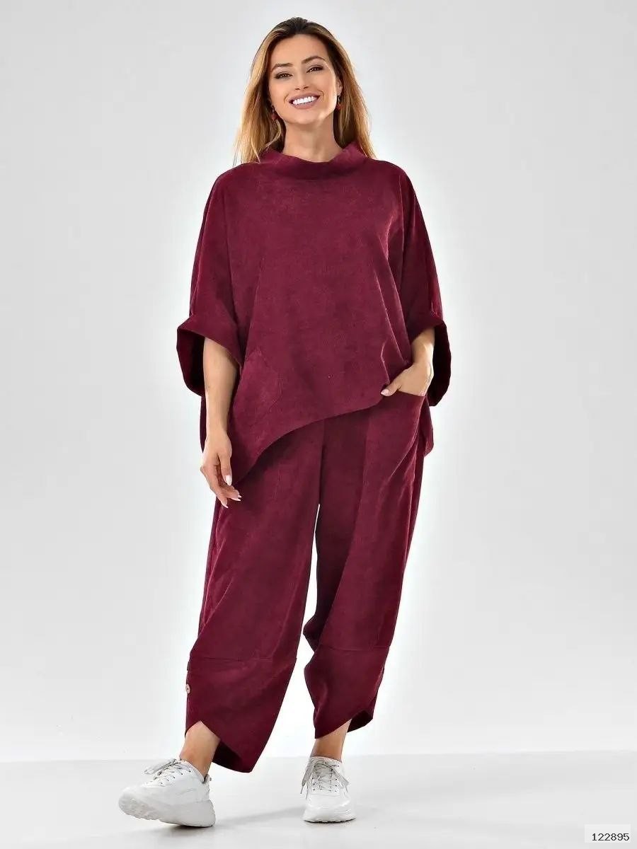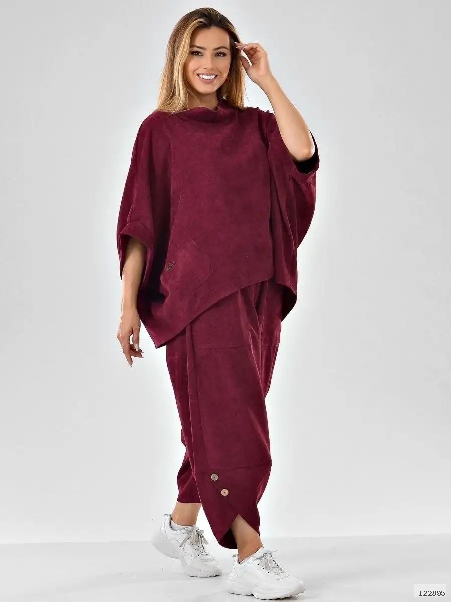Костюм двійка в стилі бохо. Брюки мають зручний пояс на резинці, великі кишені, оздоблення ґудзиками.