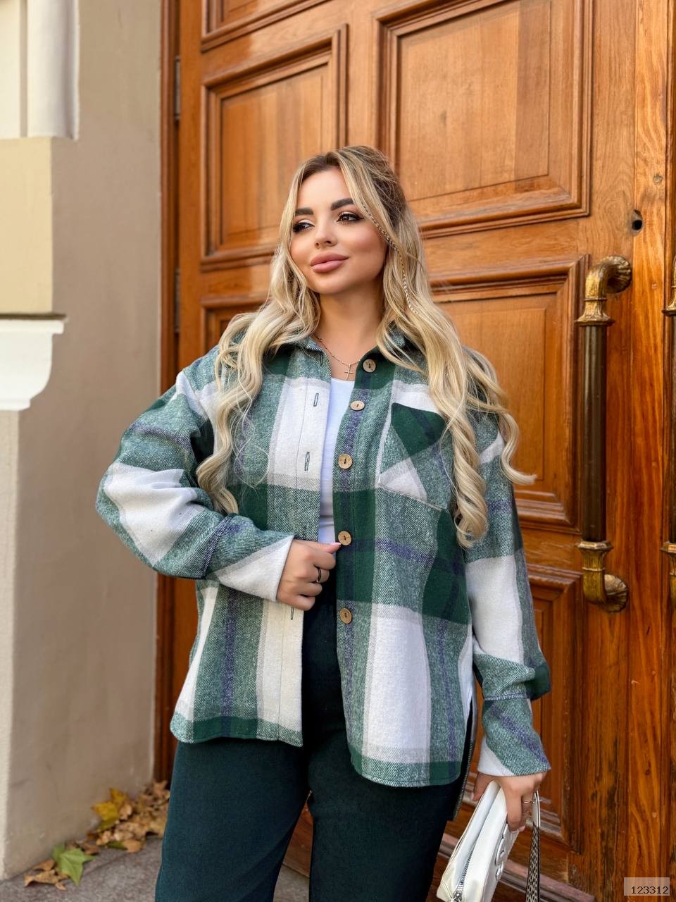Сорочка в класичну клітинку з бавовни — м’яка, приємна до тіла, дихає. Має асиметричну довжину — спереду коротша, ззаду подовжена.