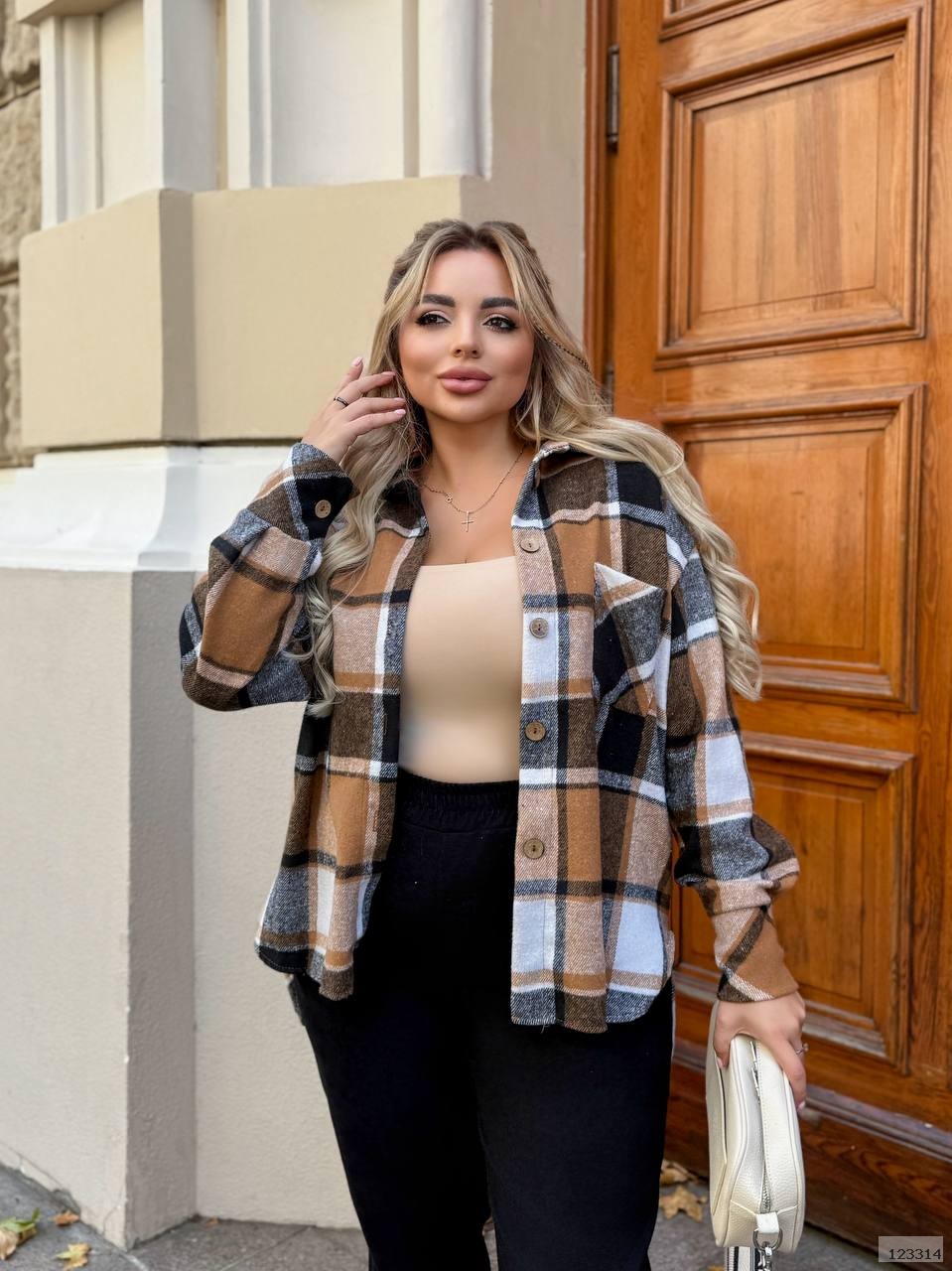 Сорочка в класичну клітинку з бавовни — м’яка, приємна до тіла, дихає. Має асиметричну довжину — спереду коротша, ззаду подовжена.