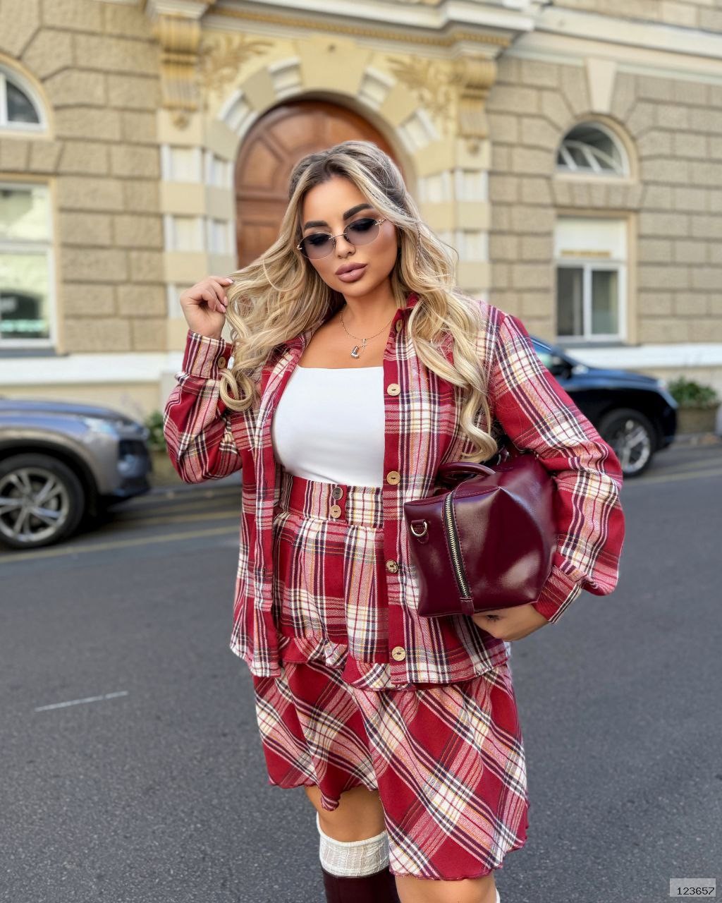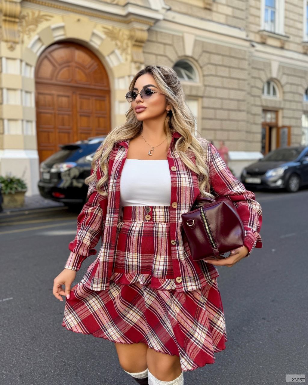 Стильний та комфортний костюм, що складається з фланелевої сорочки та спідниці. Ідеальний варіант для прохолодної пори року. М'яка фланель приємна до тіла, забезпечує тепло та затишок.
