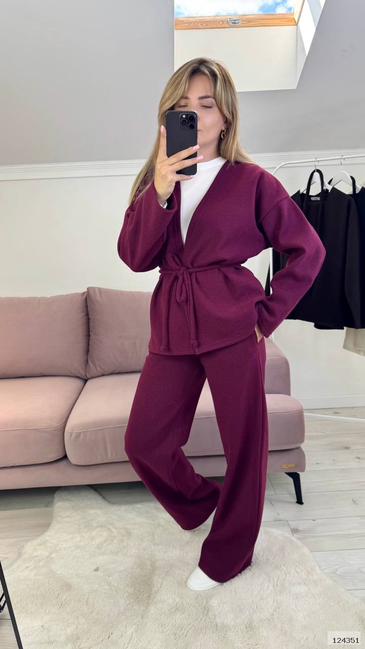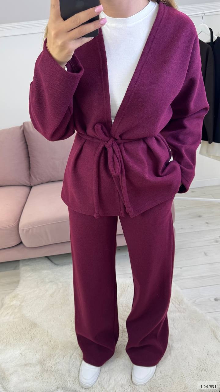 Костюм штани вільного крою, талія на резинці, з карманами. Кофта на запах, вільного крою, рукав вільний