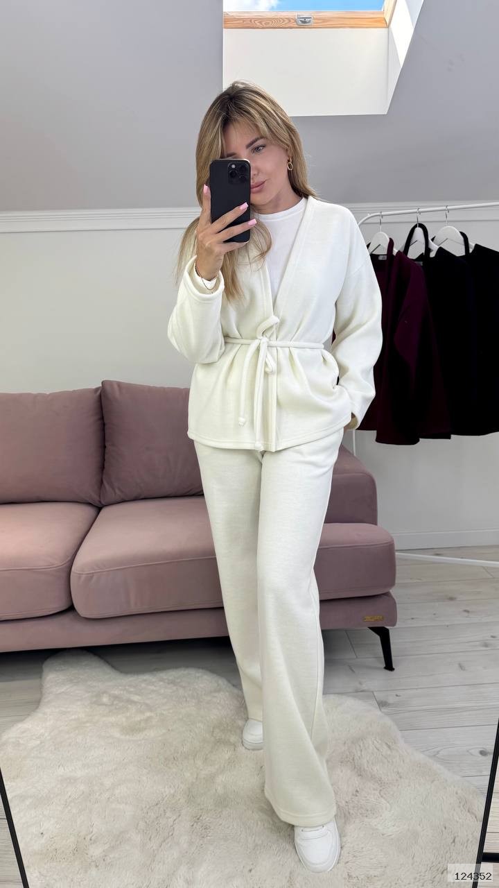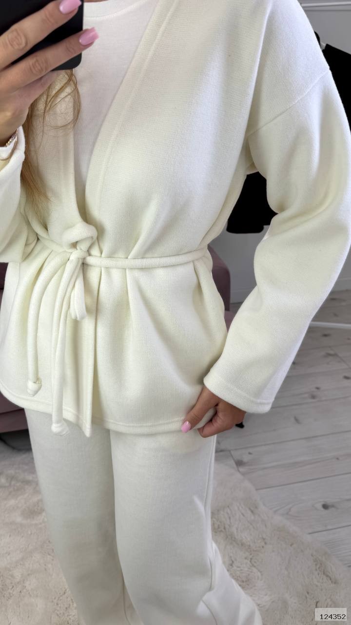 Костюм штани вільного крою, талія на резинці, з карманами. Кофта на запах, вільного крою, рукав вільний