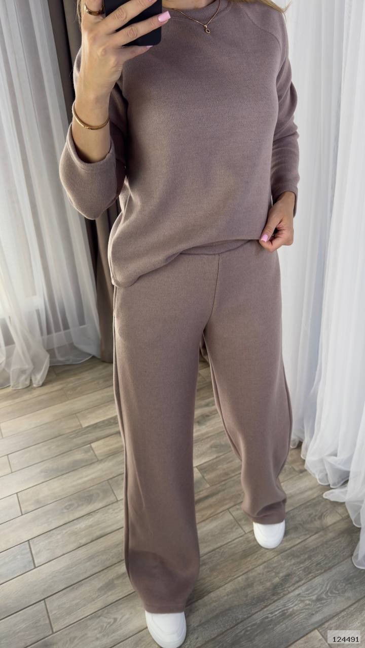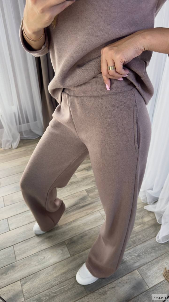 Костюм штани талія на резинці, з двома кишенями. Кофта рукав реглан. Тканина приємна до тіла, м'яка, тепла, не колеться