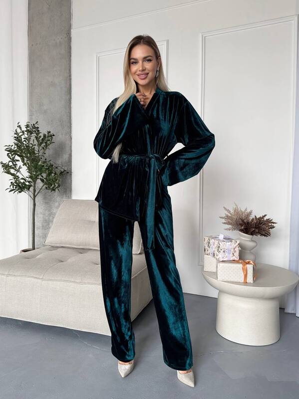 Стильний оксамитовий костюм. Кардиган + прямі штани. В ньому не тільки комфортно і тепло, а ще і дуже стильно