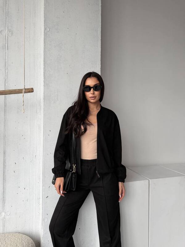 М’яка, приємна до тіла тканина гарно тримає форму, не сковує рухів та виглядає дуже ефектно. Куртка з блискавкою та зручними кишенями, штани з еластичним поясом на резинці — для максимального комфорту щодня.