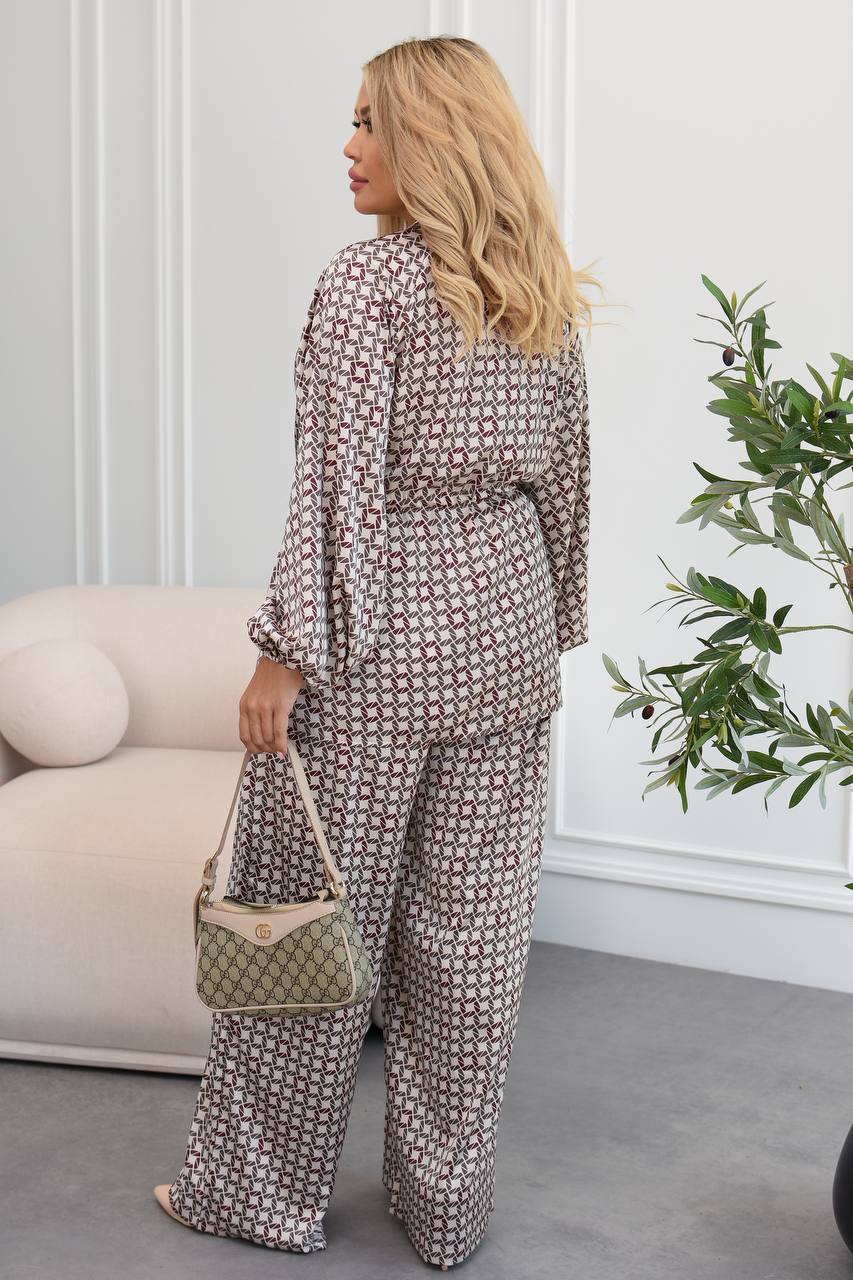 Ідеальне поєднання елегантності й розслабленого настрою. Складається з широких брюк та сорочки з довгими рукавами.