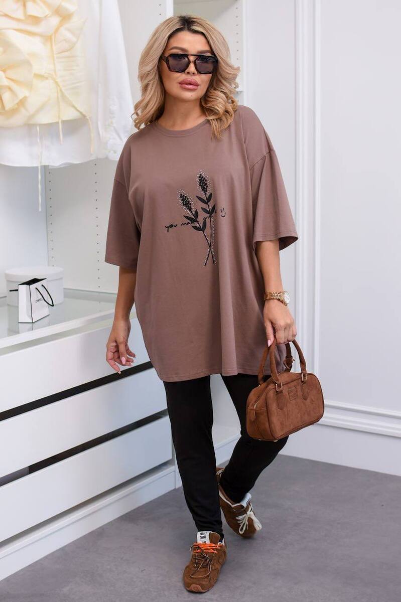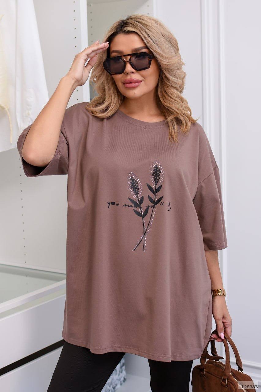 Футболка оверсайз, прикрашена стразами, лосини без кишень, пояс резинка