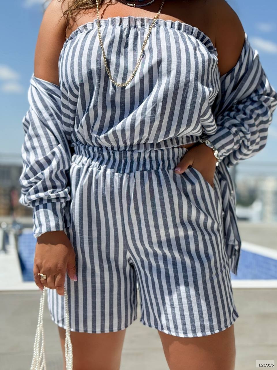 Крутий костюм трійка. Сорочка шорти та топ. Натуральна тканина