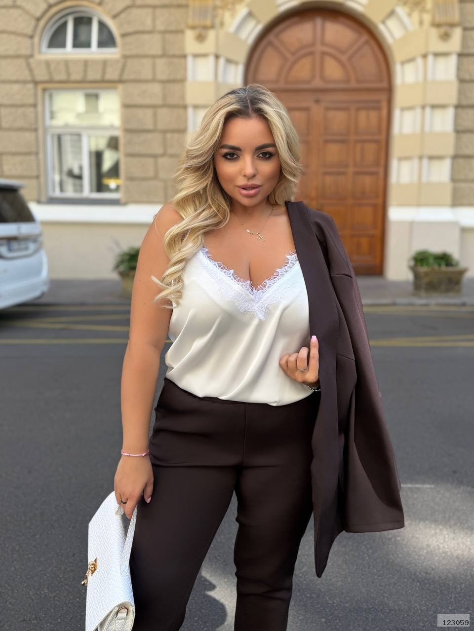 | Ткань: | піджак та брюки - костюмка, Майка шовк Армані з французьким мереживом. |