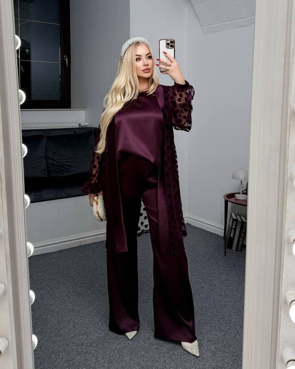 Стильний, ефектний костюм трійка з якісної преміальної тканини , ідеальний для створення витонченого образу.Накидка створює легкість , виглядає сучасно і додає родзинку образу.