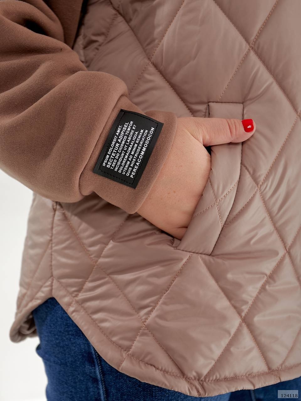 Стильна комбінована куртка підійде на сезон осінь-весна, зручний глибокий капюшон, нашивка на рукаві