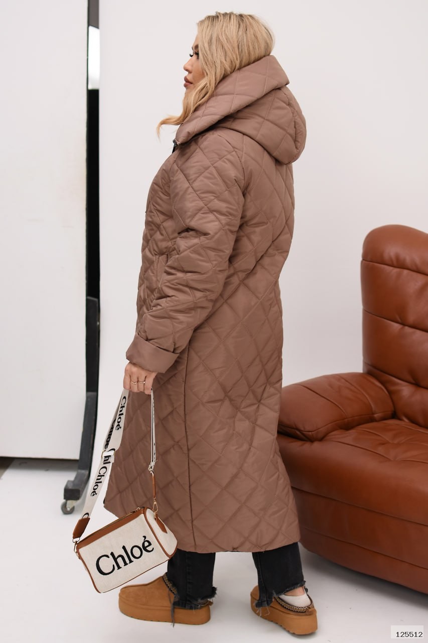 Тепле зимове пальто з капюшоном та двома прорізними кишенями. Регульовані манжети на рукавах забезпечують комфорт. Виконана з водонепроникної плащової тканини Канада, утеплювач синтепон (200 г/м²) у поєднанні з паянкою (80 г/м²) гарантує тепло при температурі до -15°C.