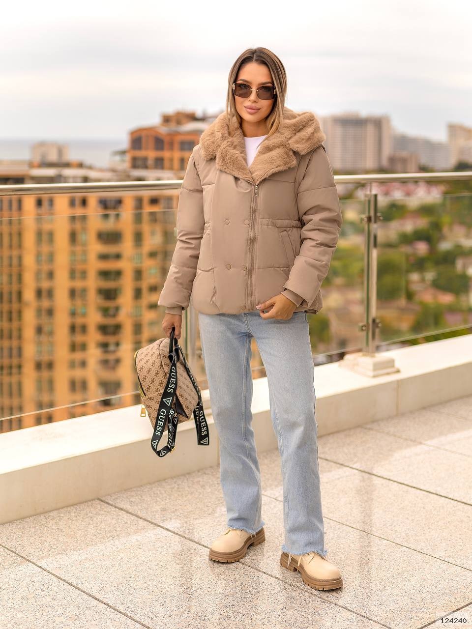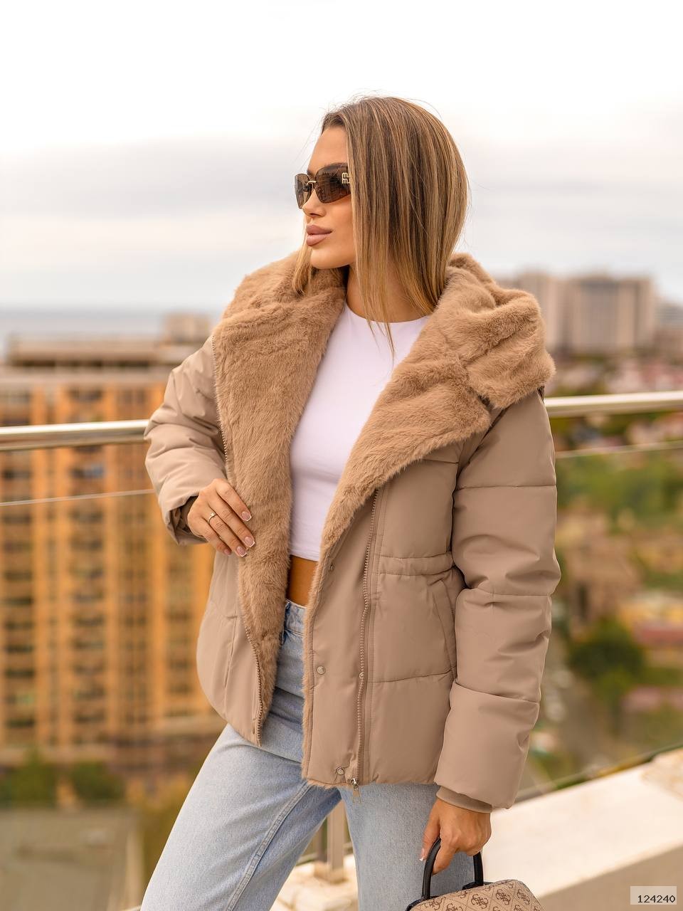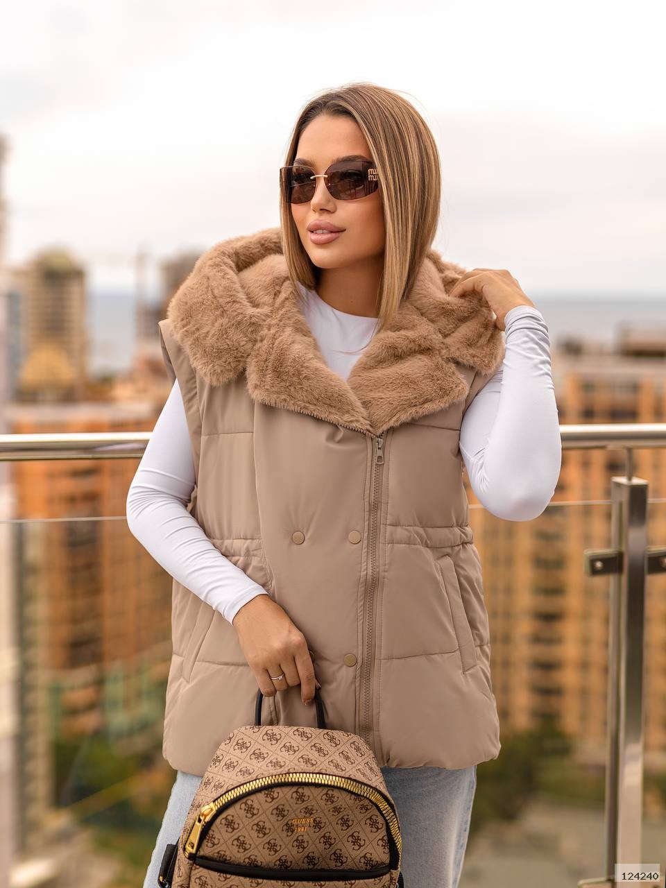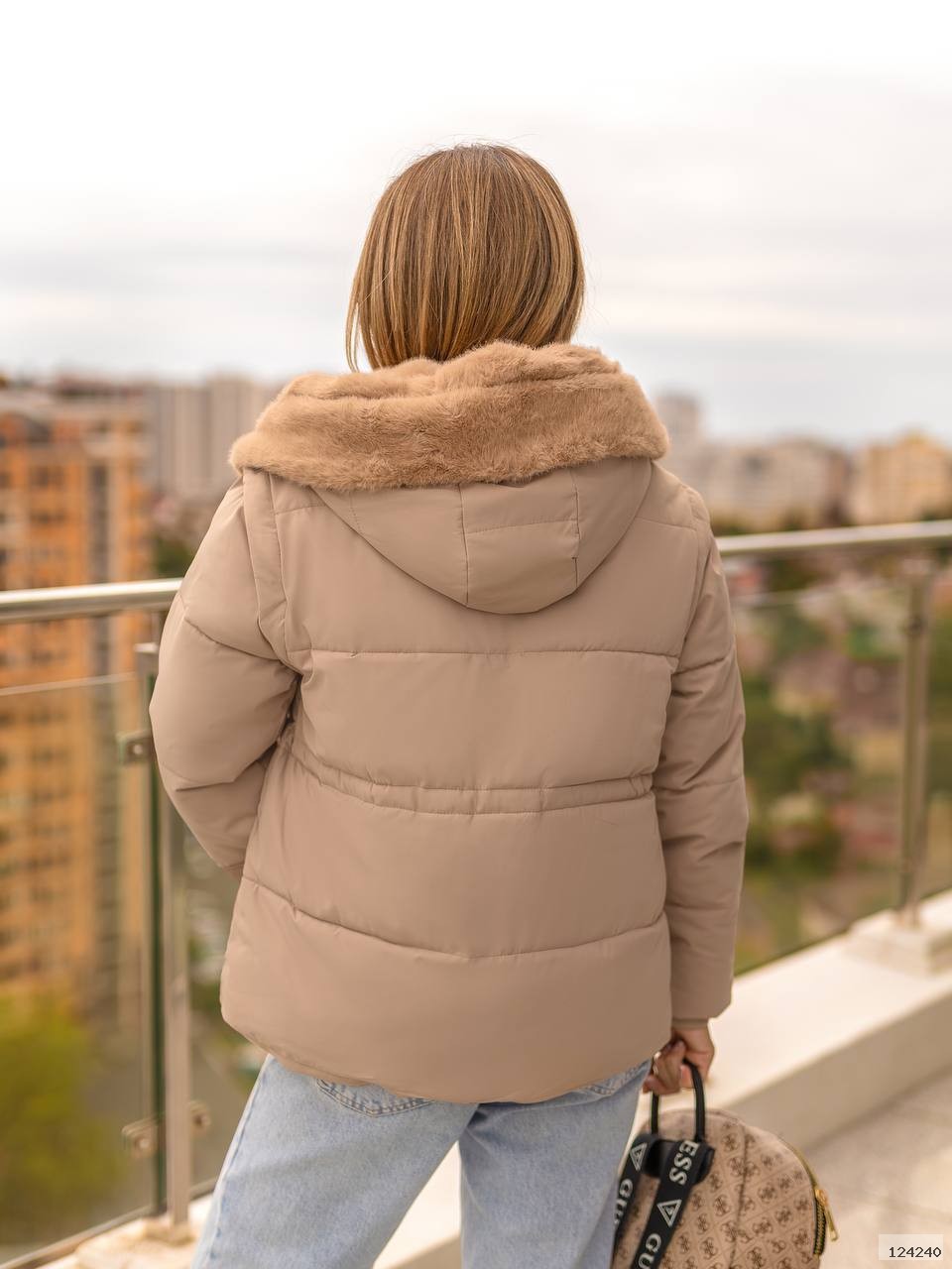 Куртка-трансформер із капюшоном,оздоблена штучним хутром «під норку».Завдяки знімним рукавам легко перетворюється на жилет,а куліска на талії та зручні кишені роблять модель практичною й стильною.