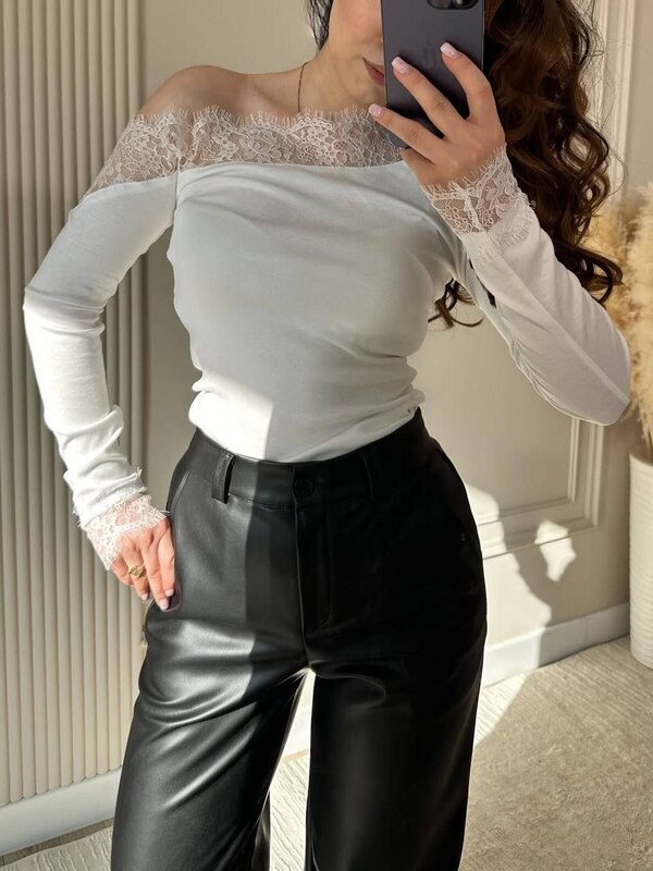 М’який трикотаж щільно сідає по фігурі, а мереживо створює ефект «вау». Відкрите плече, жіночний силует і максимум стилю.