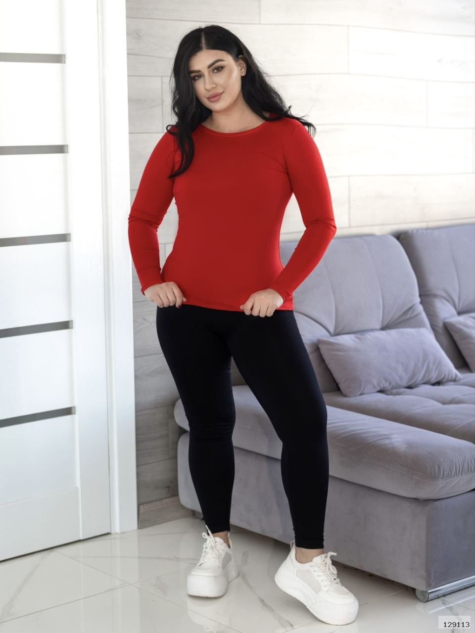 Лонгслів гарно облягає фігуру, підкреслюючи силует та не сковуючи рухи