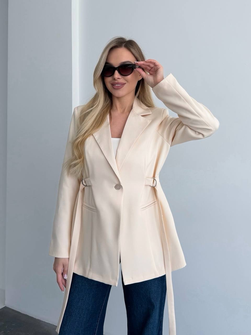Стильний піджак на підкладці. Талія регулюється затяжками