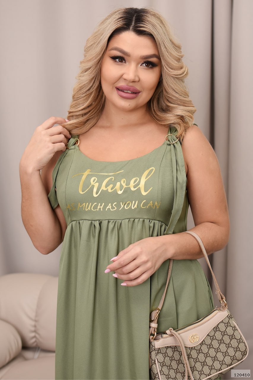 Ідеальний варіант на літо для модниць, які обожнюють комфорт і свободу рухів! Модель із трендовим принтом на грудях, довжина регулюється бретелями — тому підлаштується під будь-який зріст