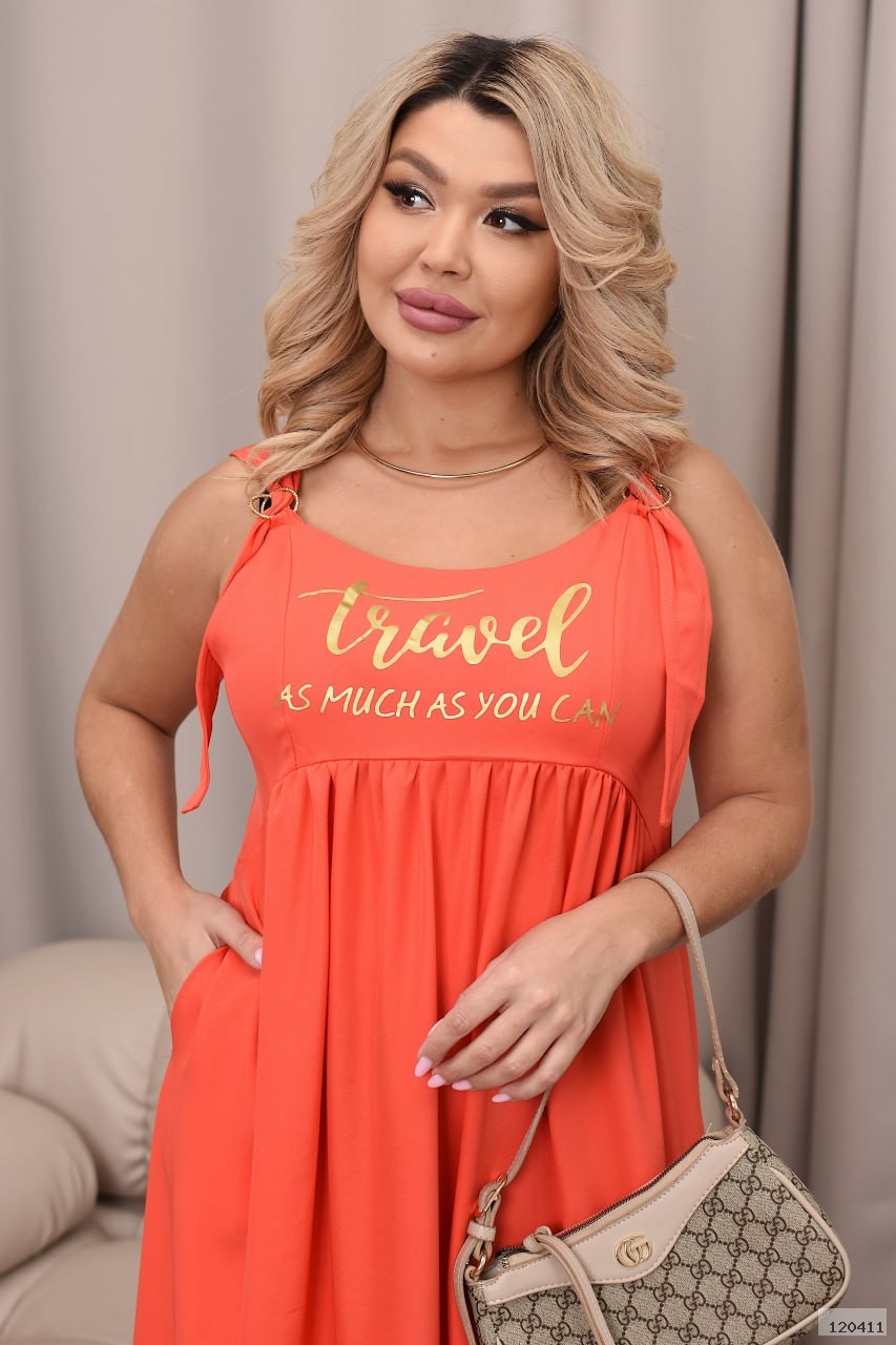 Ідеальний варіант на літо для модниць, які обожнюють комфорт і свободу рухів! Модель із трендовим принтом на грудях, довжина регулюється бретелями — тому підлаштується під будь-який зріст