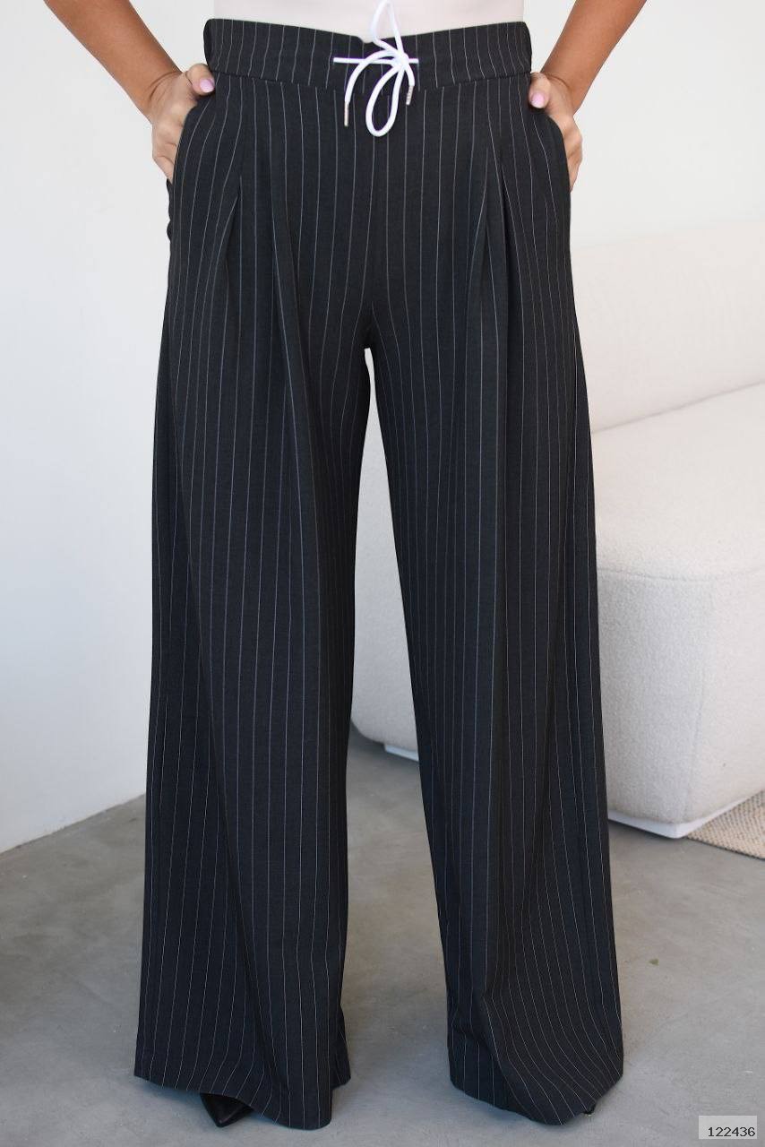 Штани вільного крою в смужку -це елегантний та зручний варіант як для ділових так і для повсякденних образів . Виготовлені з якісної, приємної на дотик тканини, талія на резинці , в них ви почуватимете себе комфортно протягом усього дня.