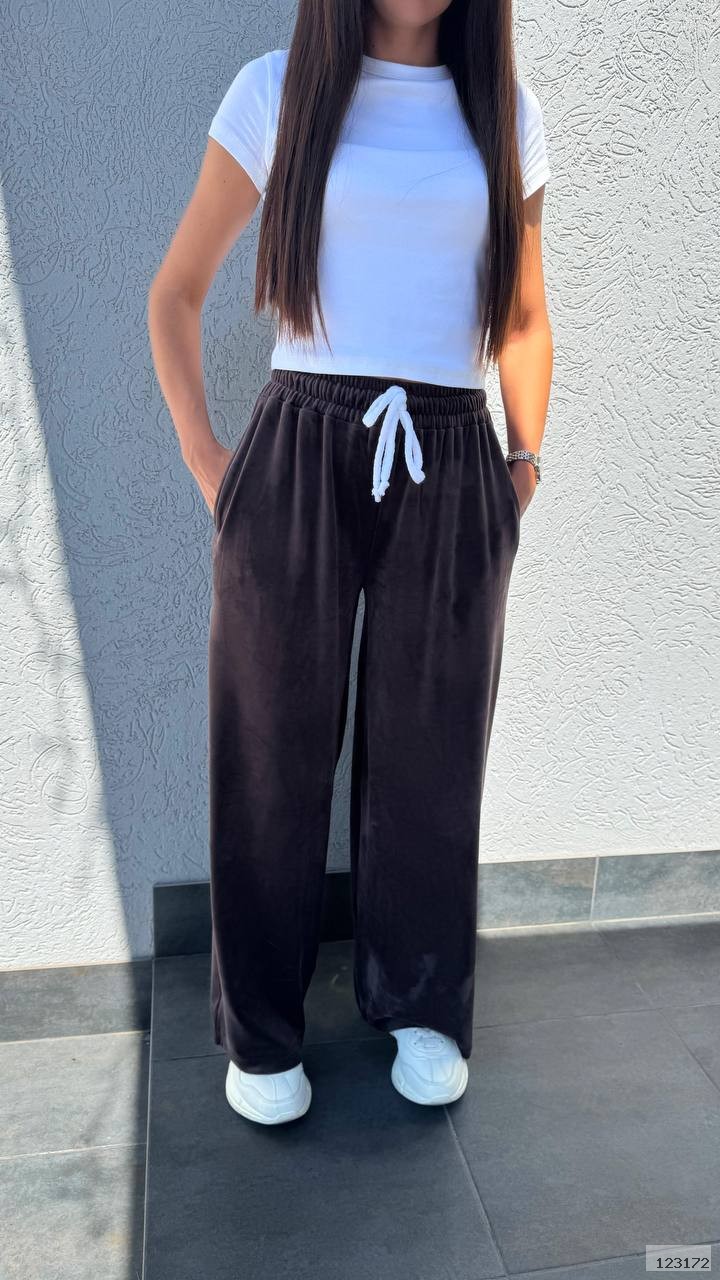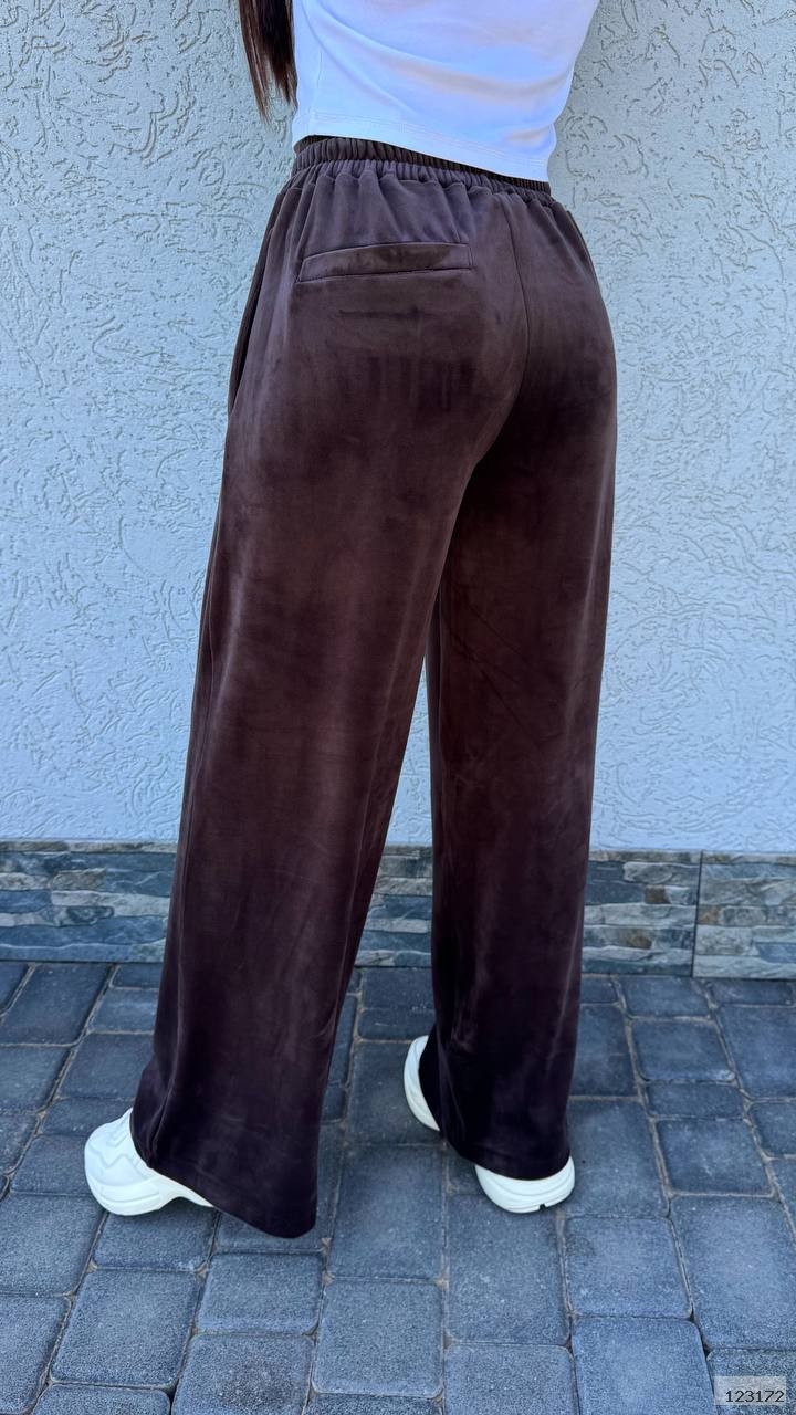 Штани вільного крою, талія на резинці, з двома карманами, позаду карман декоративний