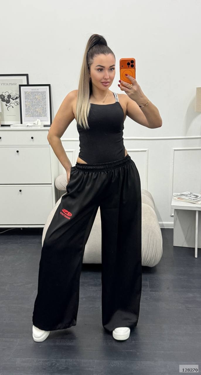 Штани знизу оздоблені куліскою. На поясі резинка з гарною розтяжністю та шнурок