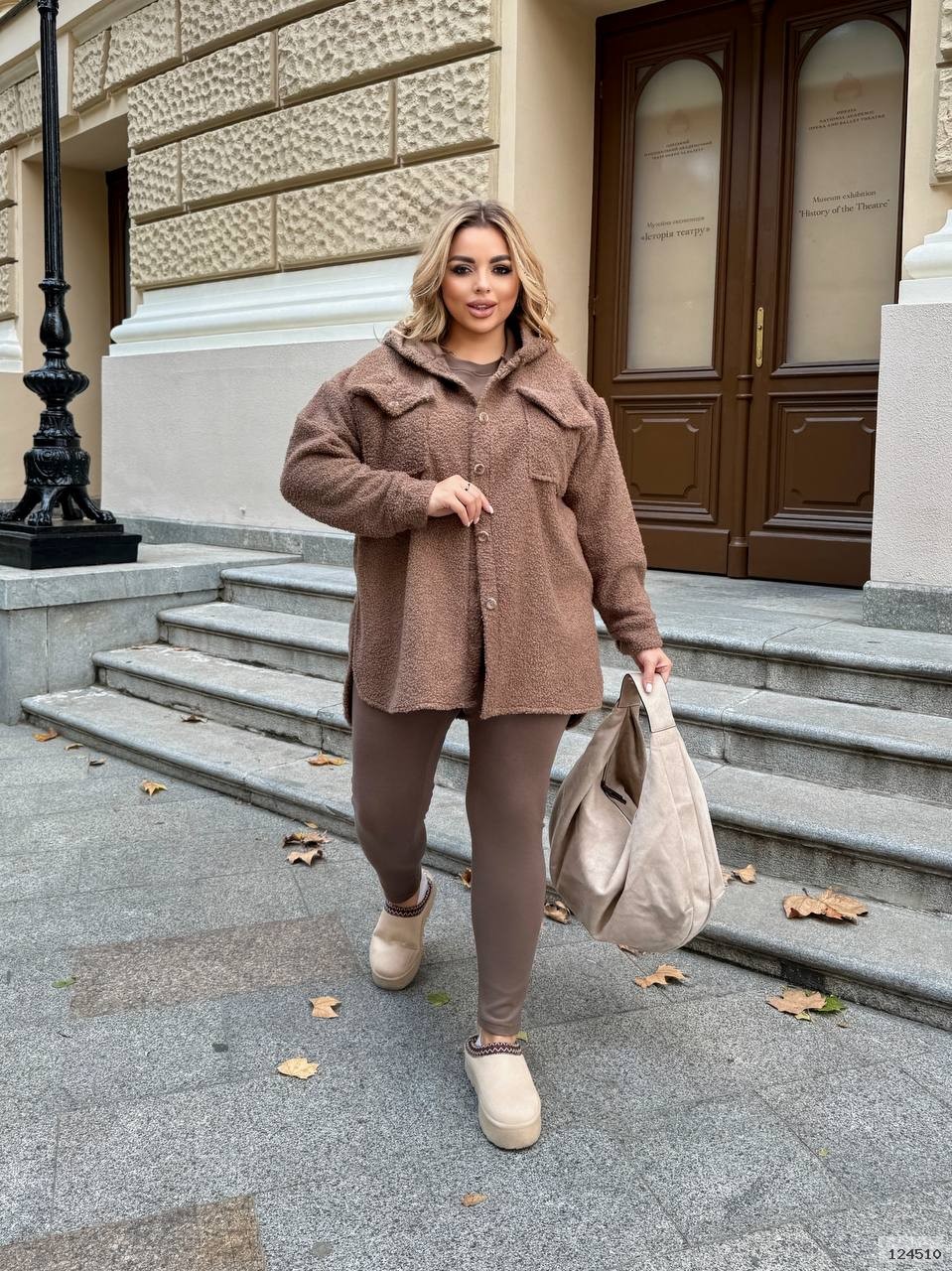 Стильна тепла сорочка з капюшоном на ґудзиках з баранчику на флісі