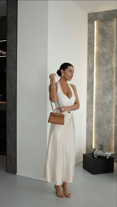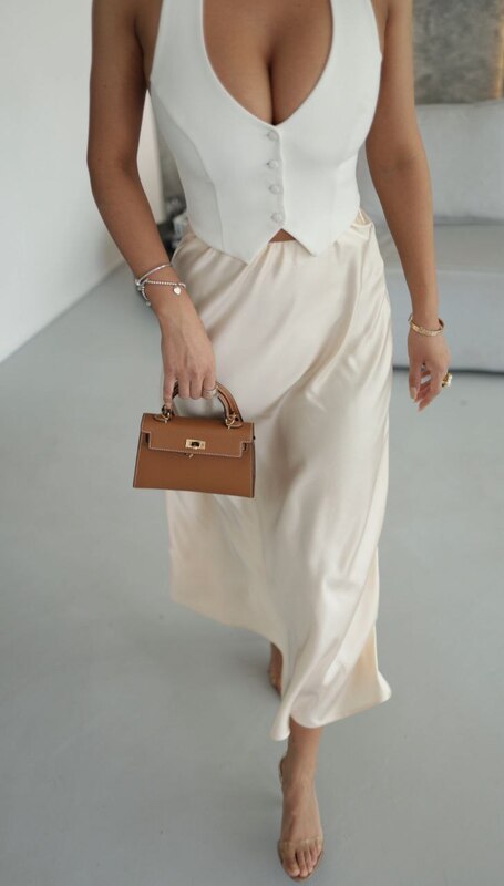 Спідниця міді - елегантний елемент гардеробу, що струмує, злегка розкльошеного крою, що створює жіночний силует. Вона приємна до тіла та універсальна: підходить для офісу, вечірніх виходів та стилю casual, поєднуючись з топами, светрами та жакетами.