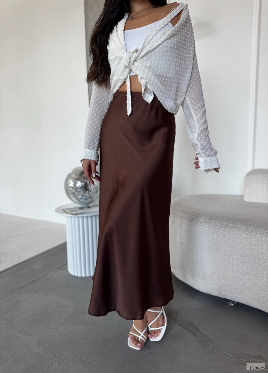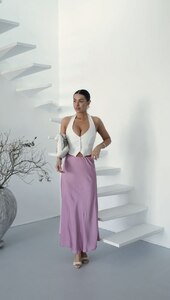Спідниця міді - елегантний елемент гардеробу, що струмує, злегка розкльошеного крою, що створює жіночний силует. Вона приємна до тіла та універсальна: підходить для офісу, вечірніх виходів та стилю casual, поєднуючись з топами, светрами та жакетами.
