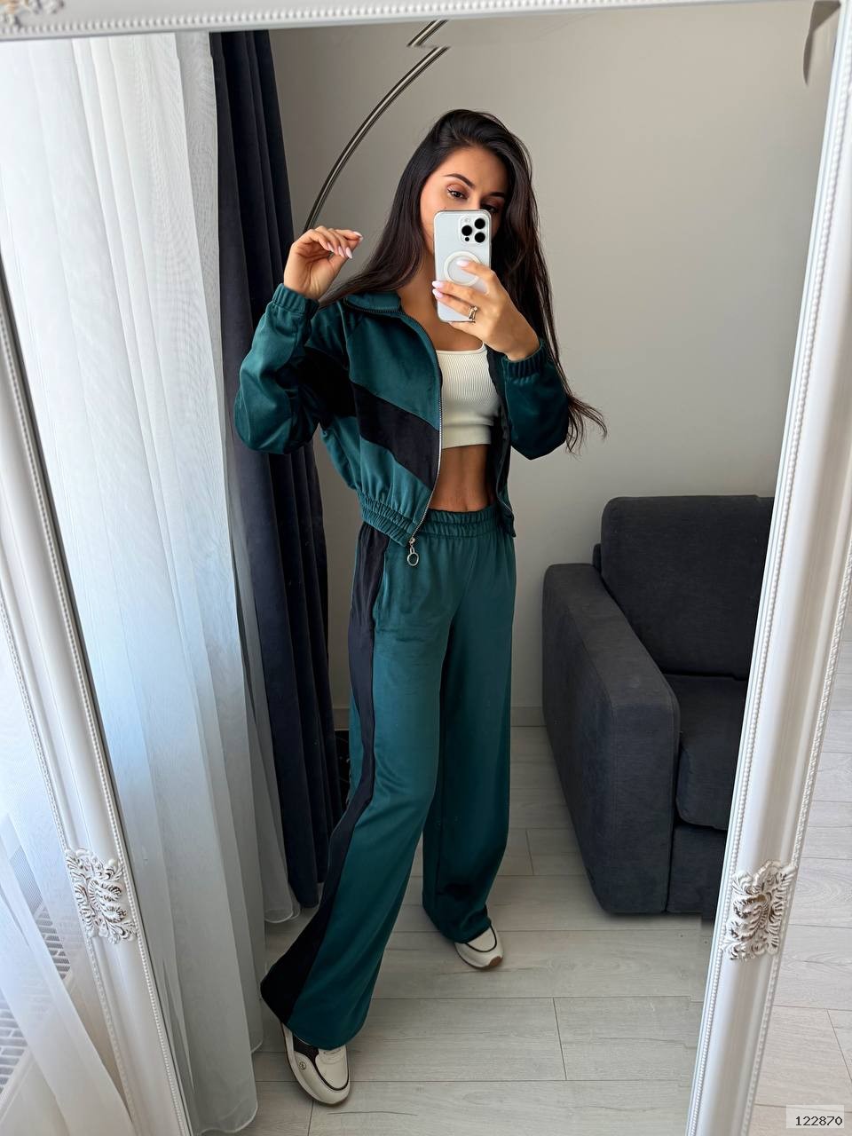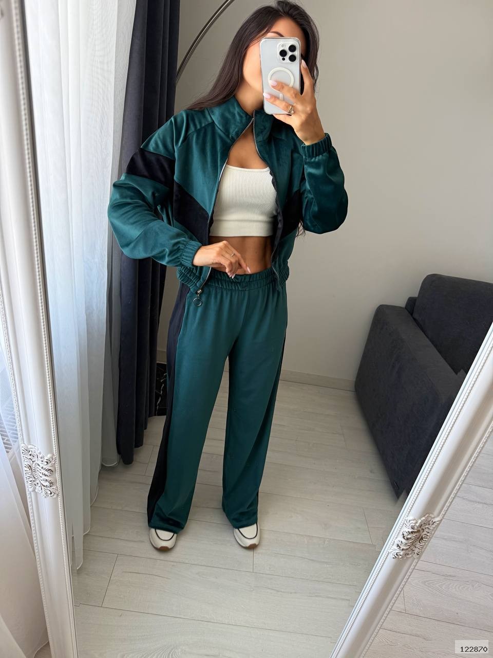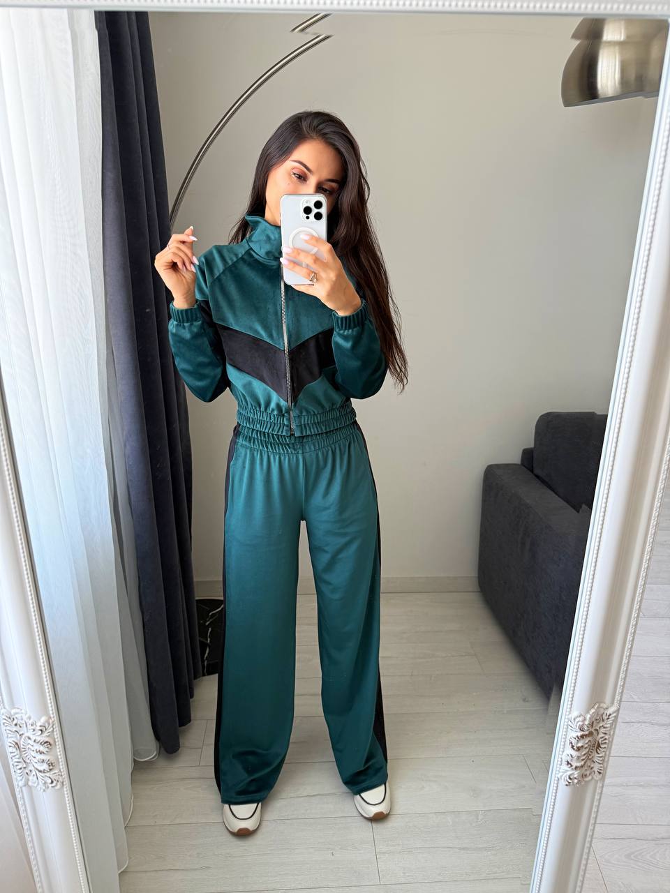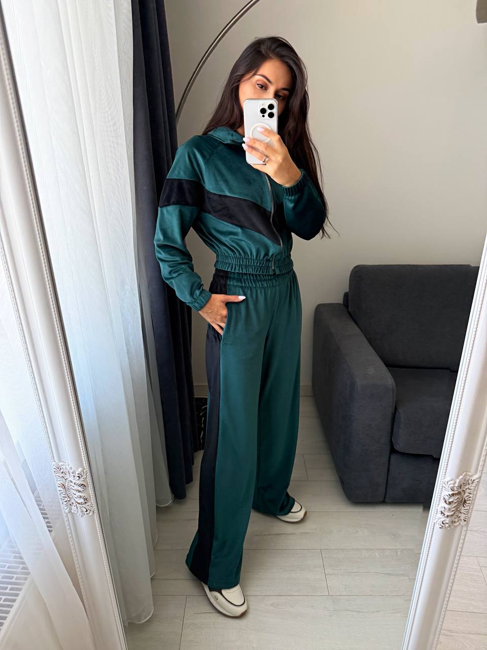 Ідеальний вибір для прогулянок, подорожей або затишного відпочинку. Велюр приємний до тіла та виглядає дорого — ви почуватиметесь комфортно й виглядати бездоганно.
