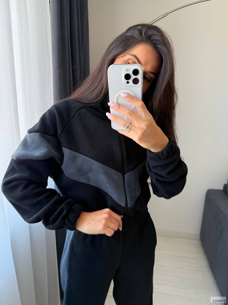 Ідеальний варіант для прогулянок, дому чи поїздок — м’який, комфортний та стильний. Кофта з блискавкою, прямі штани з високою посадкою та зручною резинкою на поясі. Комбінація кольорів додає образу динаміки.