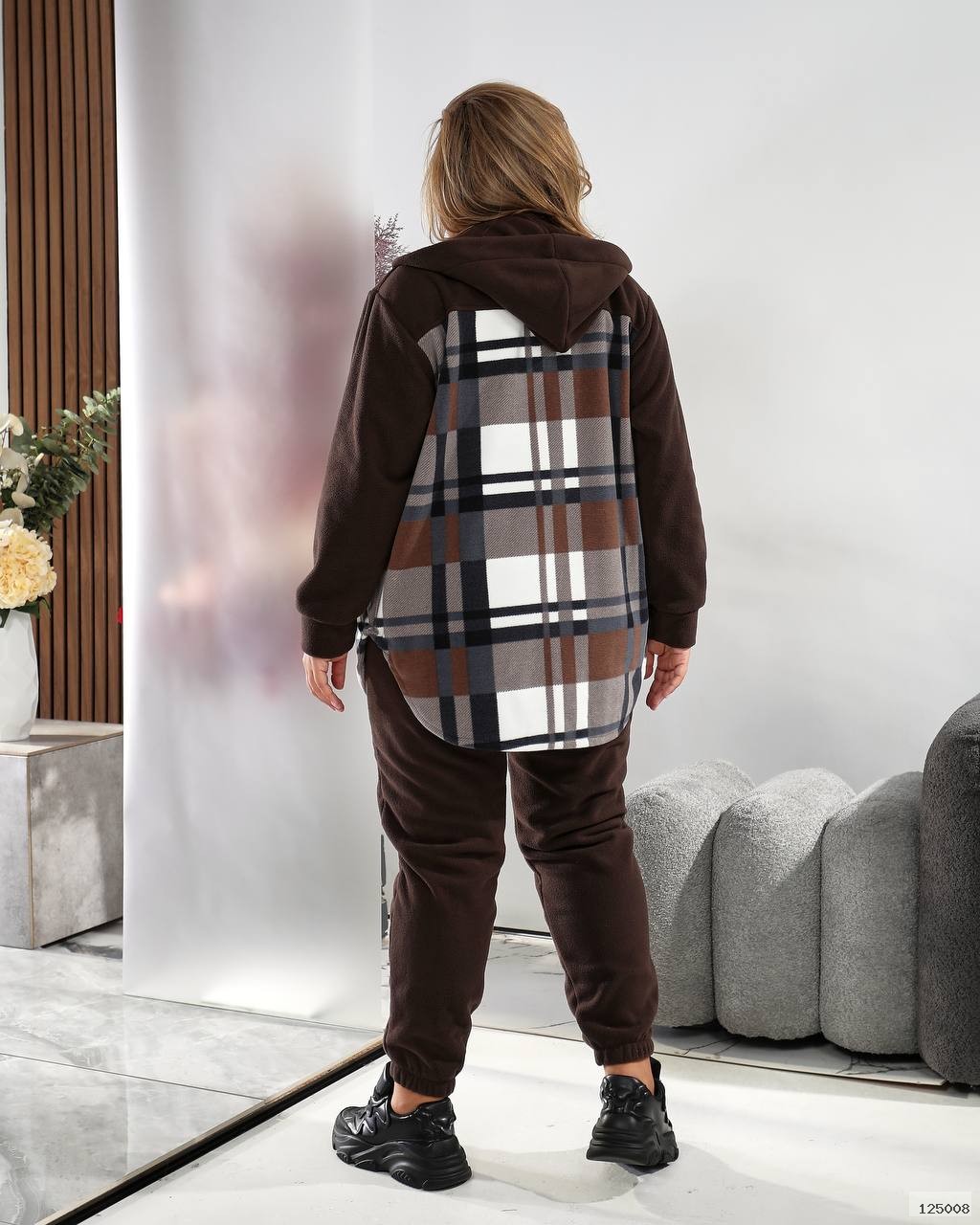 Сорочка з капюшоном та модним клітинчастим принтом створює ефектний образ, а зручні штани дарують комфорт і свободу рухів. Чудово підходить для прогулянок, відпочинку та повсякденного стилю.