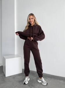Оверсайз худі з капюшоном і зручними кишенями додає затишку, а штани на гумці з манжетами забезпечують комфорт і свободу рухів.