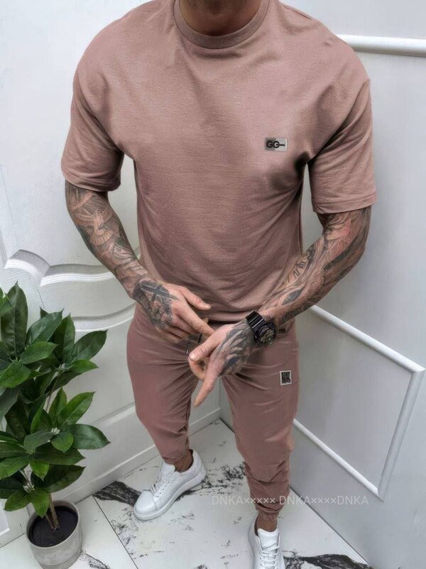 Футболка з силіконовою нашивкою на грудях,штани з еластичним поясом зі шнурком,бічними кишенями,силіконовою нашивкою та манжетами на резинці.