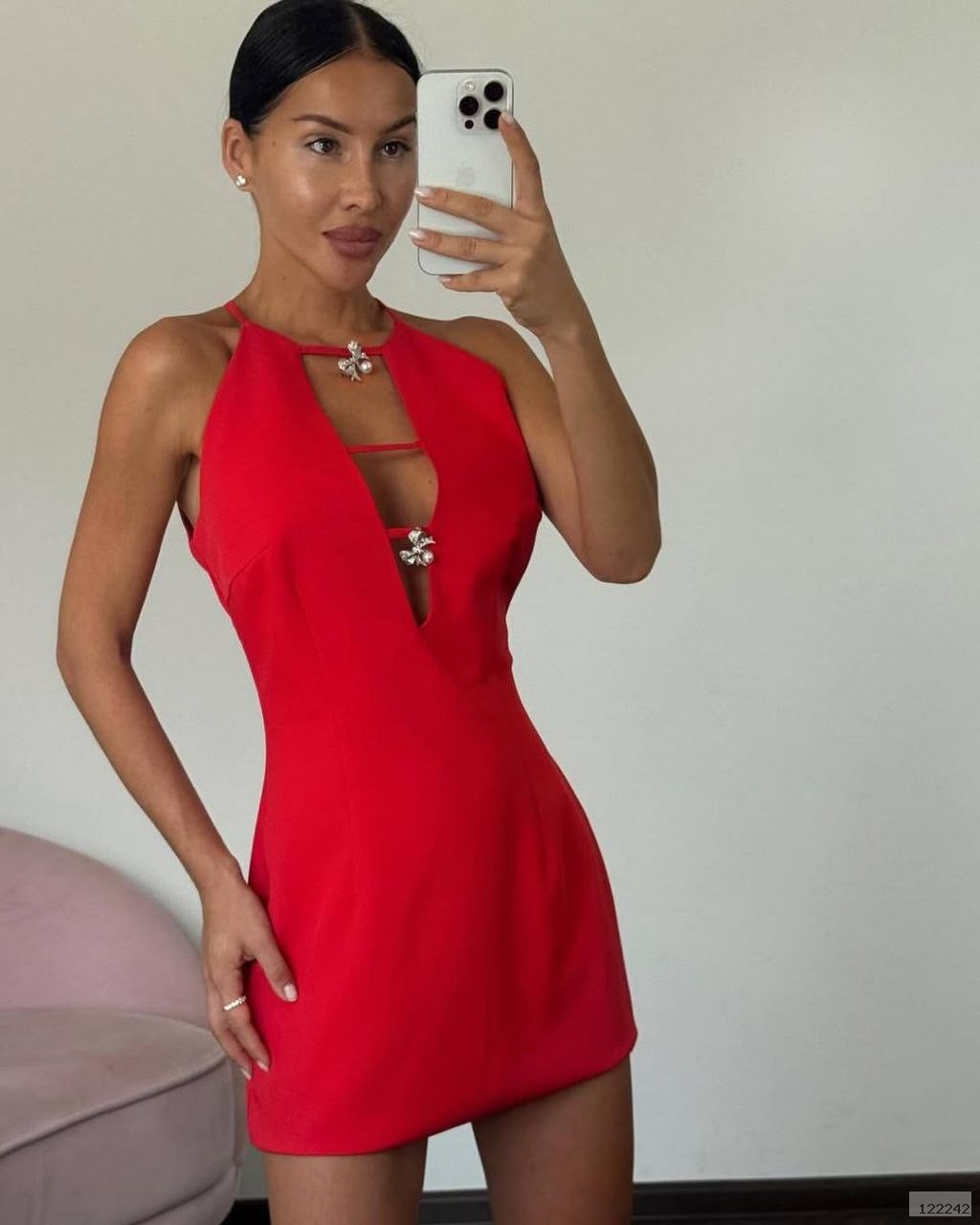 Сукня гарно лягає по фігурі, брошка в вигляді бантика надає образу неперевершеності. Ця річ не замінна в твоїй шафі. Всі погляди будуть тільки твої.