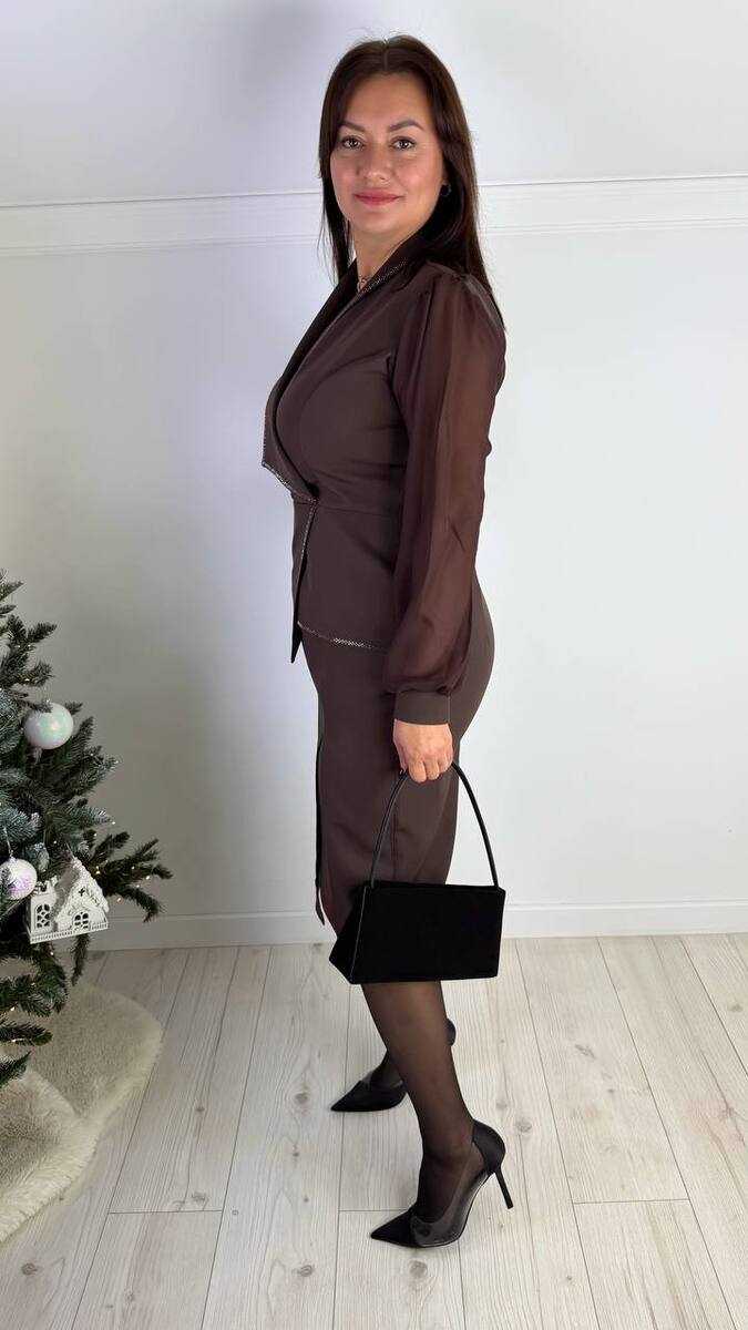 | Ткань: | креп костюмний, шифон, оздоблення термокаміння |