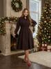 Елегантна сукня довжини міді, виконана з м’якого мікровельвету, який приємний до тіла та має делікатну текстуру. Матеріал чудово тримає форму, підкреслює силует і водночас залишається комфортним у щоденному носінні.
