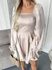 Стильна сукня міні, що поєднує в собі елегантність та легкість. Модель виконана з щільної, якісної тканини, яка не просвічується та чудово тримає форму. Прямий квадратний виріз підкреслює лінію плечей, а об’ємні рукави зі зібраними манжетами та воланами додають ніжності й романтичності.