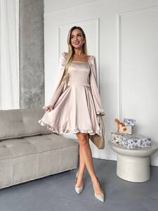 Стильна сукня міні, що поєднує в собі елегантність та легкість. Модель виконана з щільної, якісної тканини, яка не просвічується та чудово тримає форму. Прямий квадратний виріз підкреслює лінію плечей, а об’ємні рукави зі зібраними манжетами та воланами додають ніжності й романтичності.