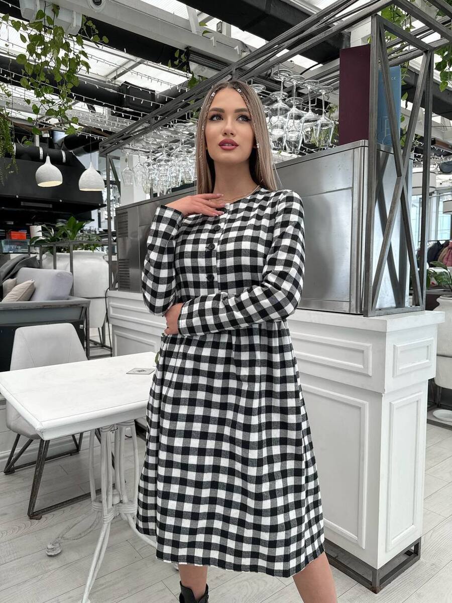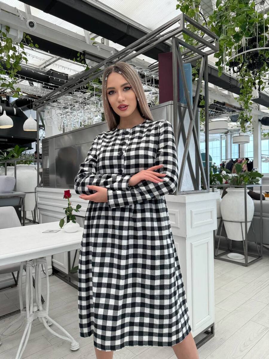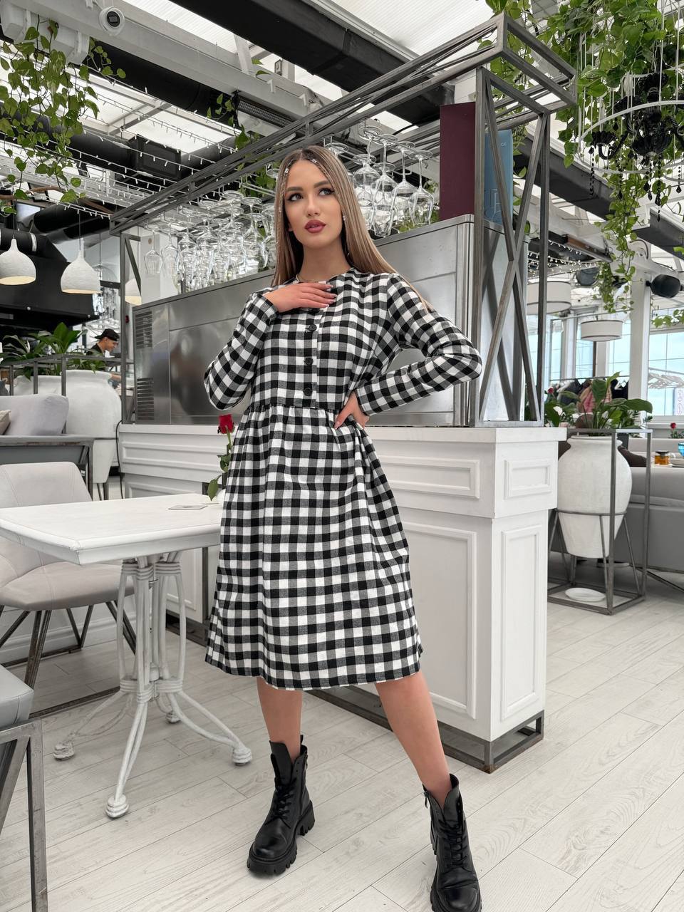 Стильна сукня в клітинку — ідеальний варіант для комфортних і модних образів у прохолодну пору. Модель виконана з коттону з легкою байкою, тому тканина м’яка, приємна до тіла та добре зберігає тепло