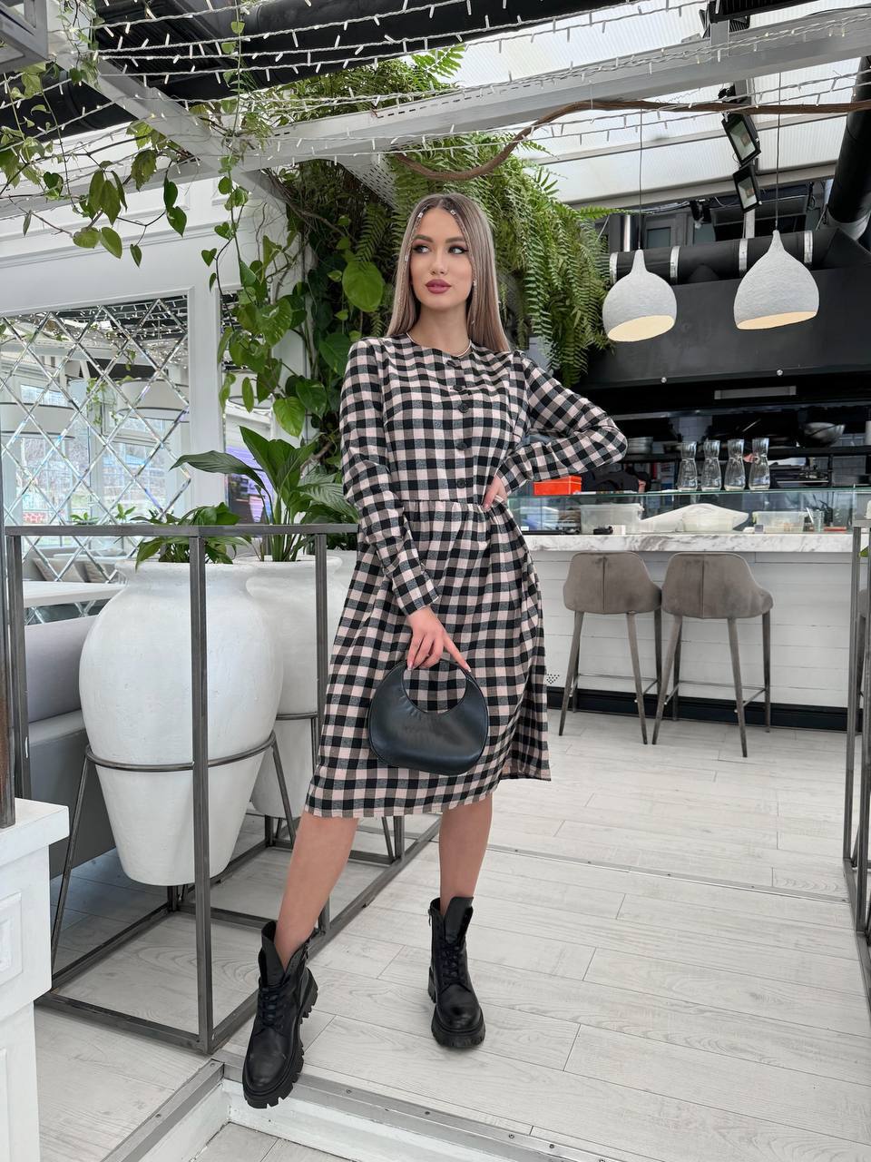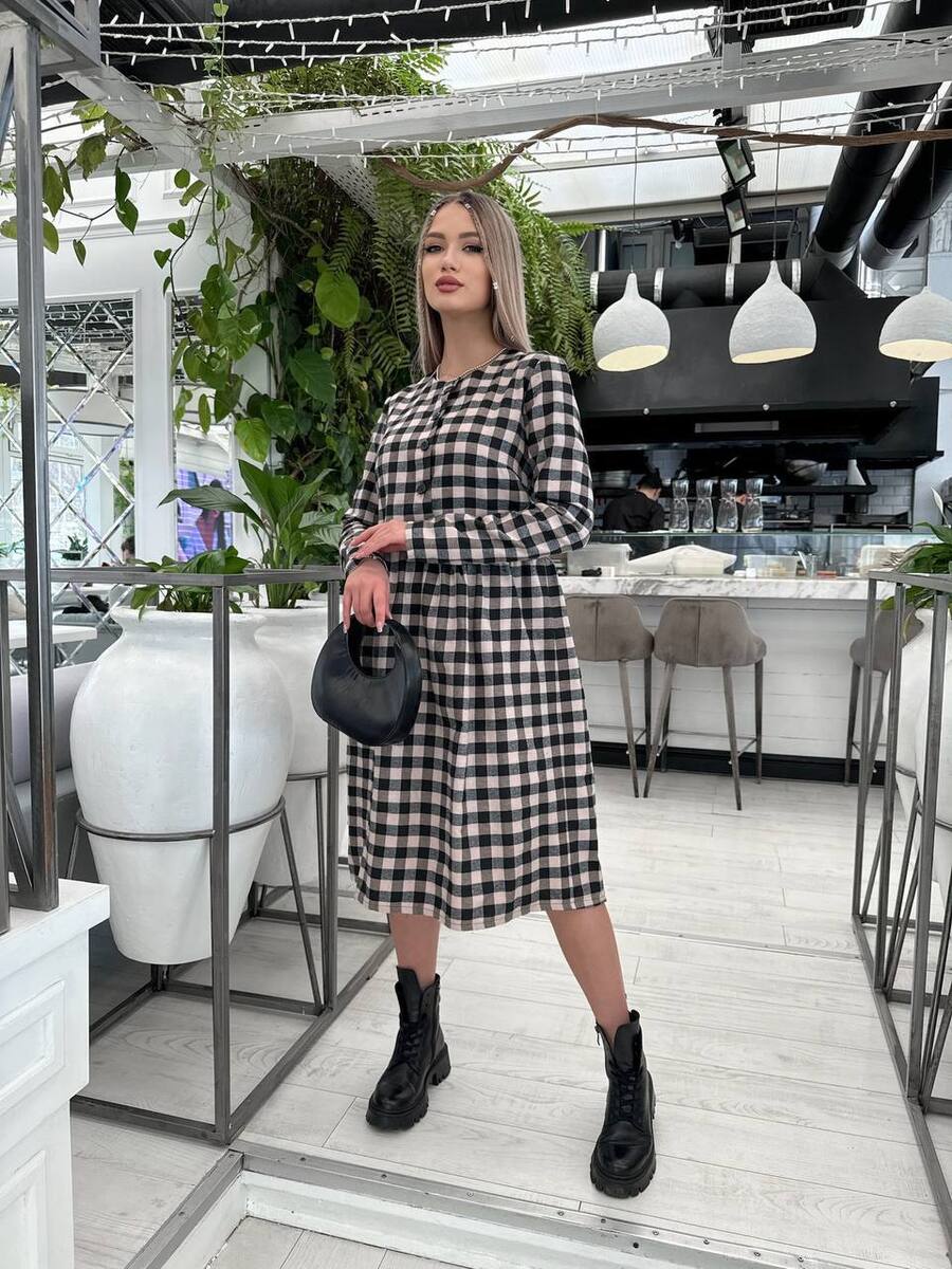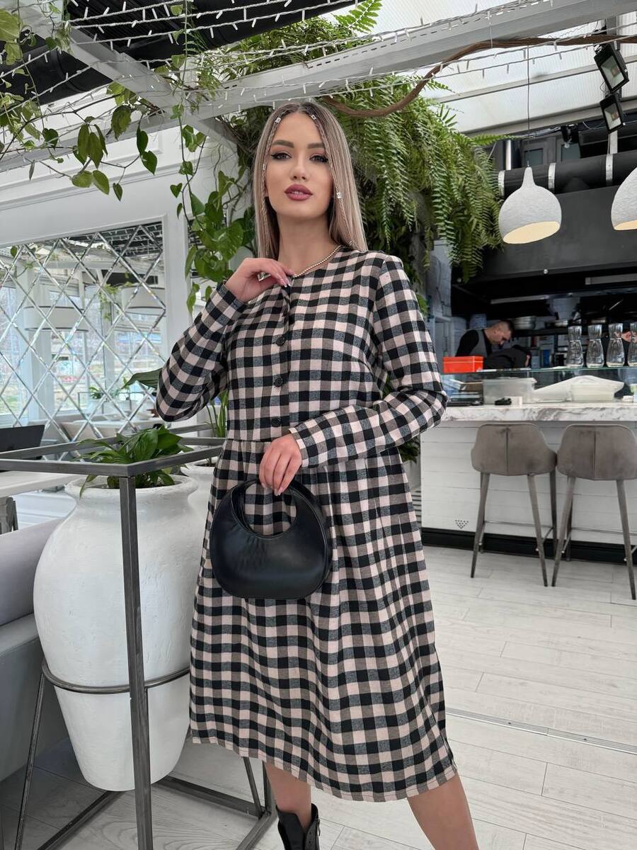 Стильна сукня в клітинку — ідеальний варіант для комфортних і модних образів у прохолодну пору. Модель виконана з коттону з легкою байкою, тому тканина м’яка, приємна до тіла та добре зберігає тепло