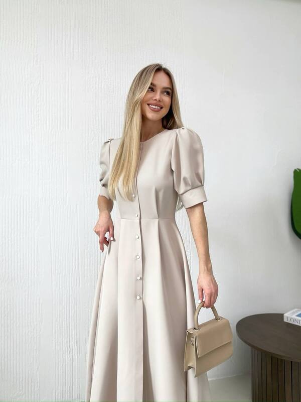 Стильна сукня міді, така жіночна і яскрава. Ґудзики імітація перлів