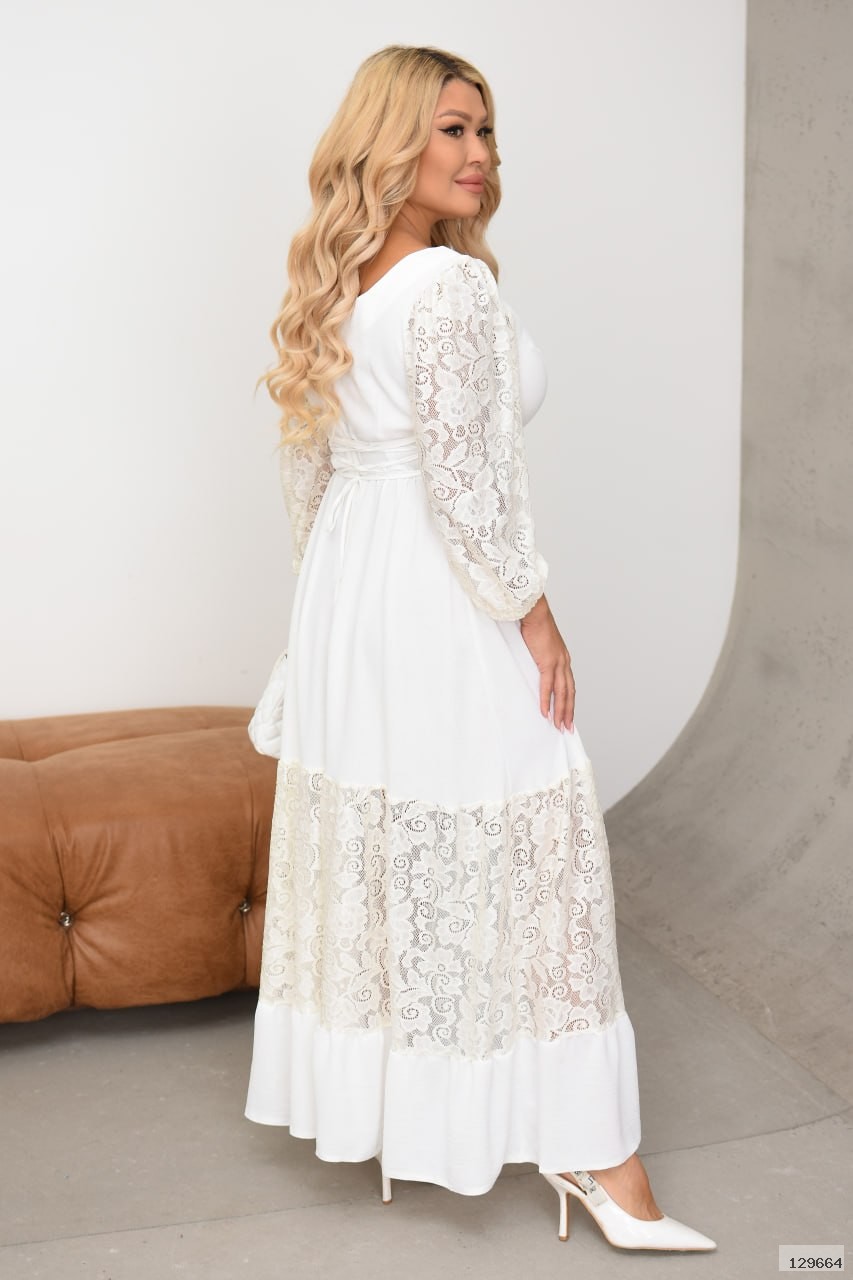 Елегантна комбінована максі-сукня із фактурної жатки та гіпюру. Ідеальний вибір для урочистих подій, романтичних вечорів чи стильних фото!