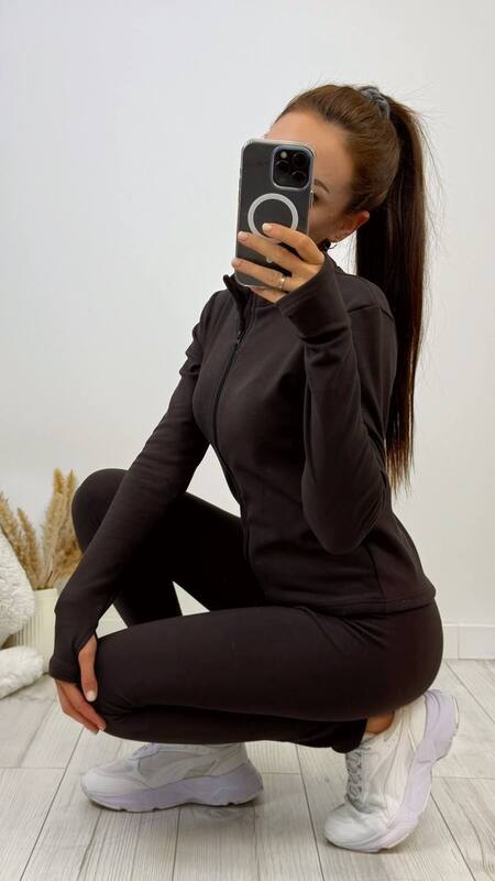 Костюм кофта на змійці, на рукаві виріз для пальця, лосини талія на резинці, посадка висока