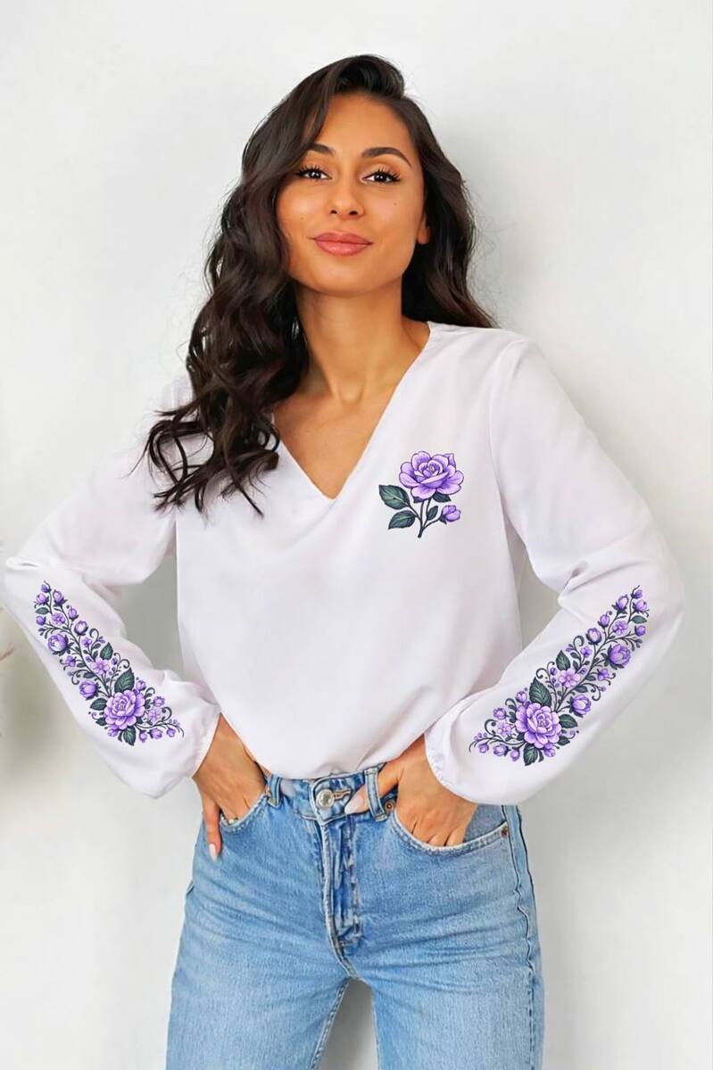 Блуза із софту з різними принтами